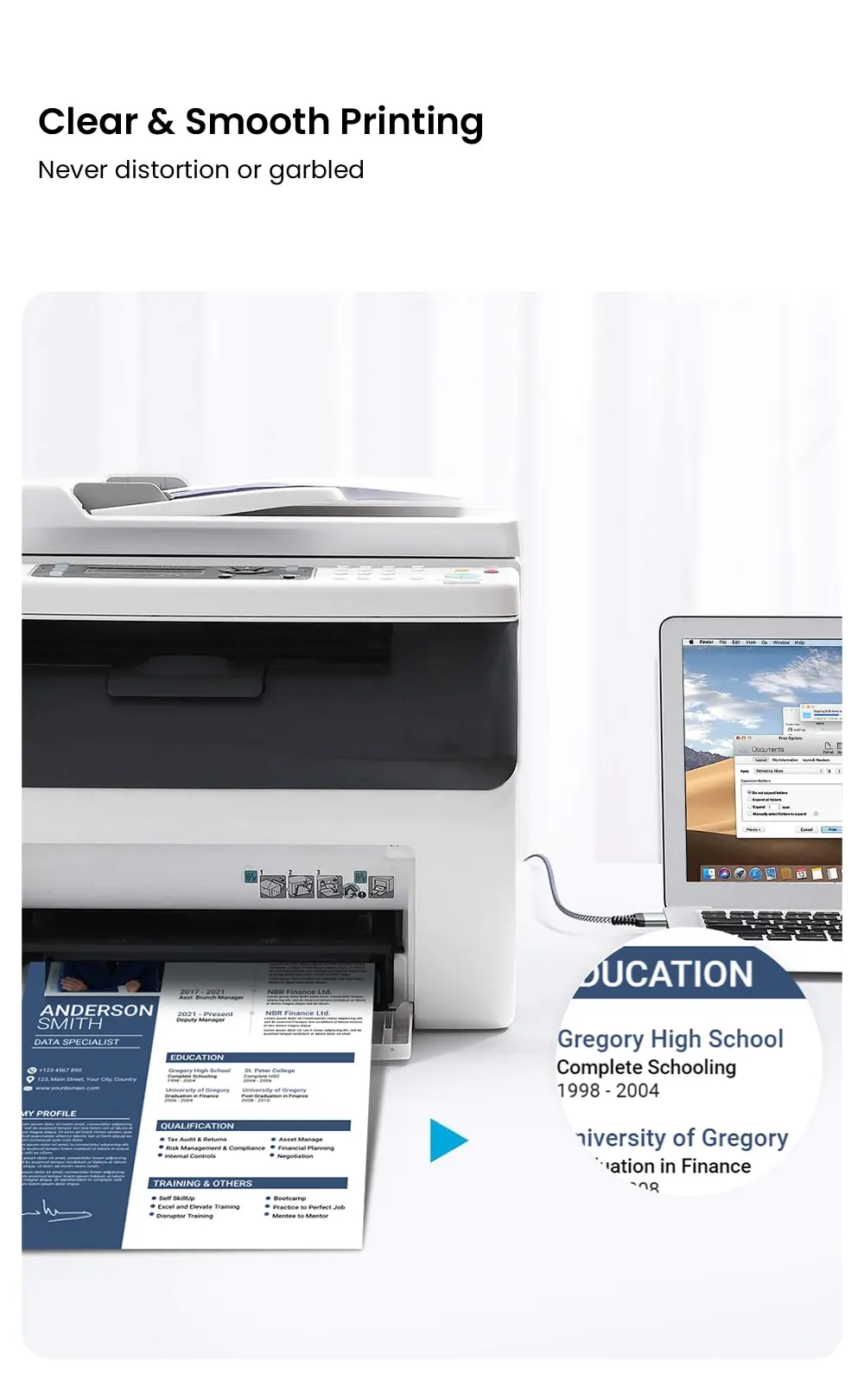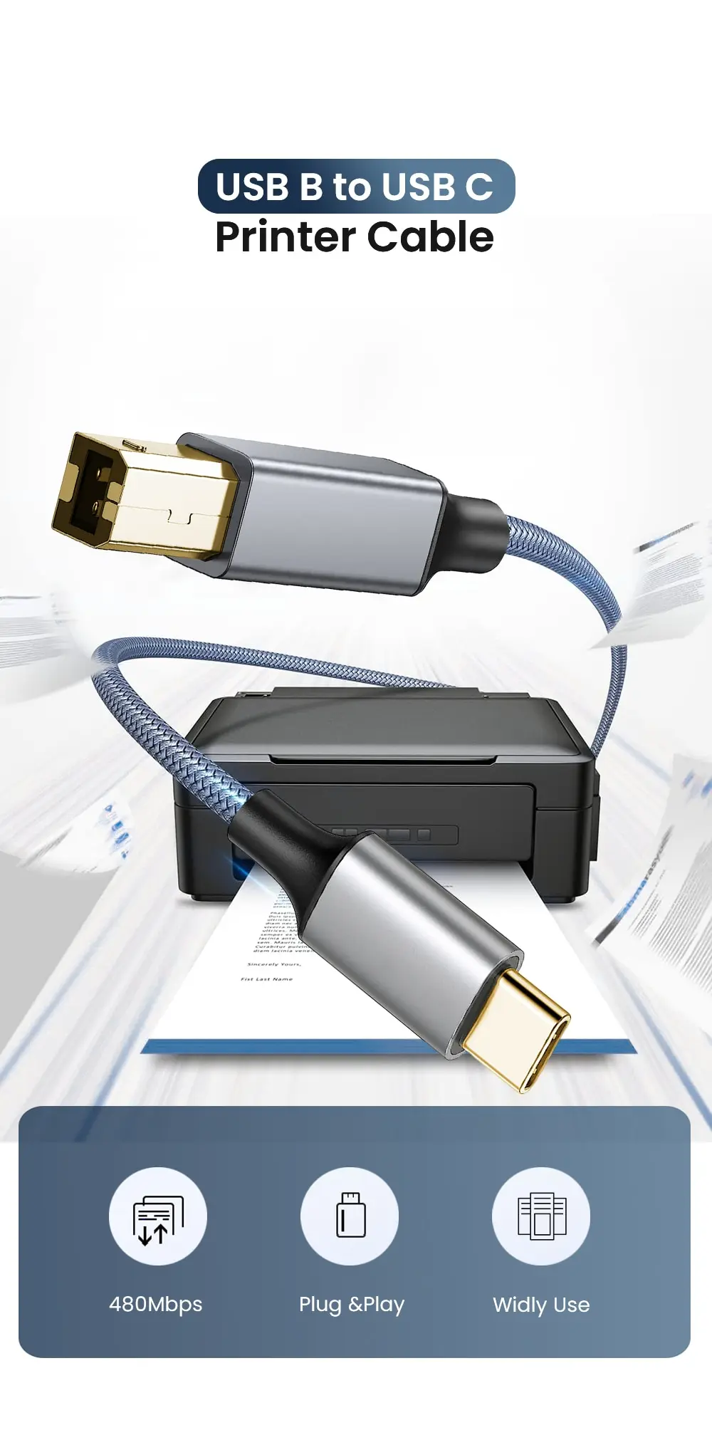 【Conexión estable y diseño duradero】: el cable cuenta con una funda trenzada de nylon que proporciona un excelente rendimiento de transmisión y protege contra el ruido EMI/RFI. El Cable de PVC completamente blindado permite una impresión clara y conveniente sin pérdida de datos durante el proceso de impresión.