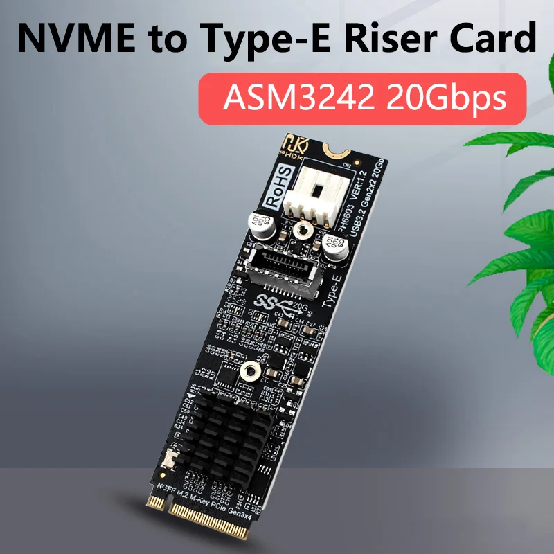 NIEUWE M.2 naar TYPE-E-adapter 20 Gbps Hoge snelheid M2 PCIE NVME naar TYPE E Uitbreidingskaart Riser Type E voor voorpaneel USB-C voor desktop