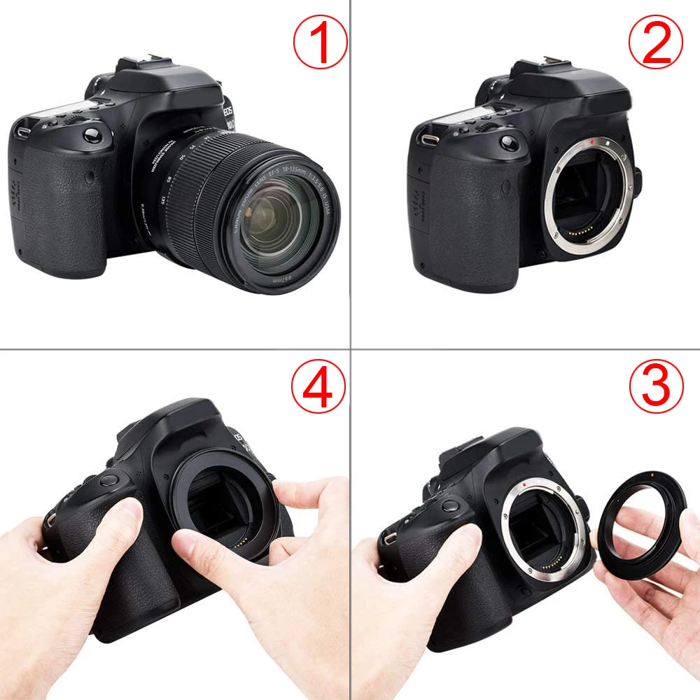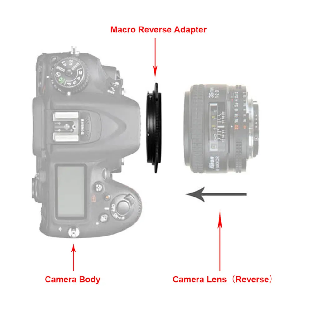 1.Con este anillo inverso, puede convertir una lente común en una lente macro y conectarla en una cámara DSLR con montura Nikon F.