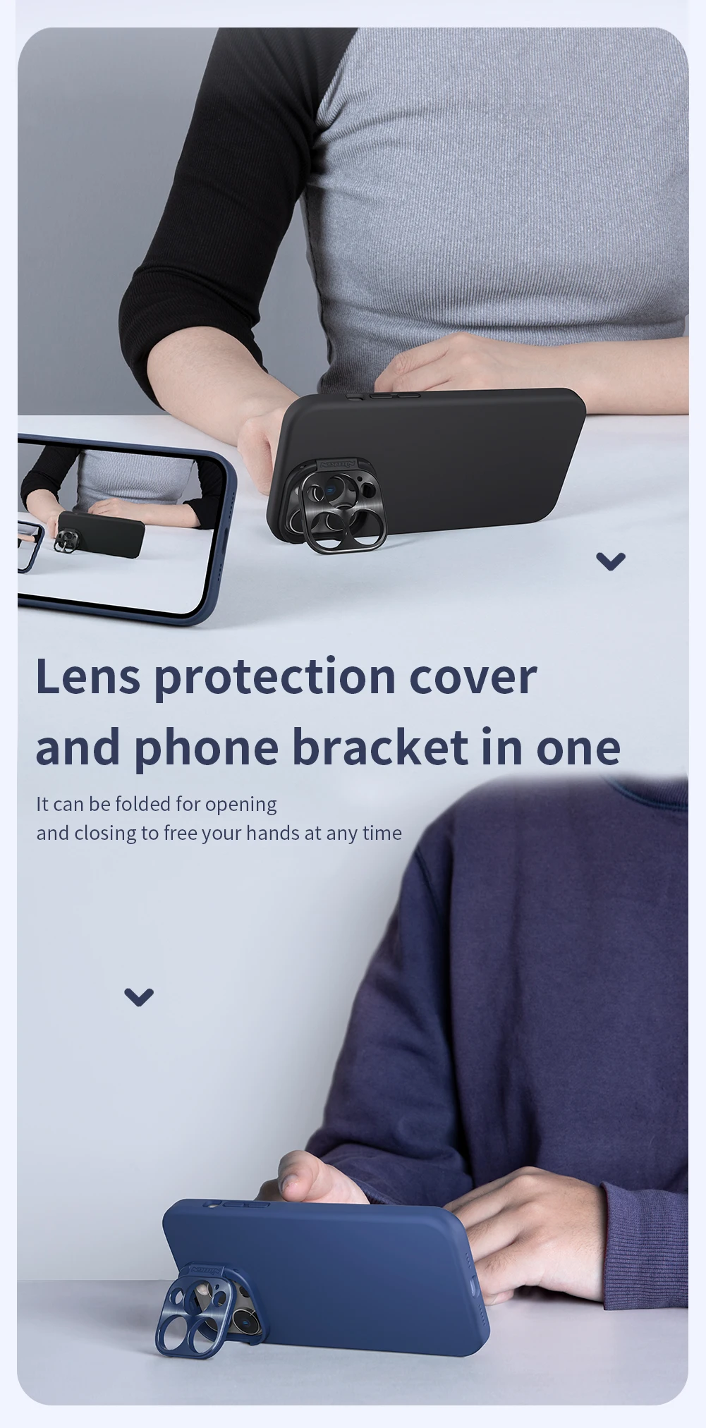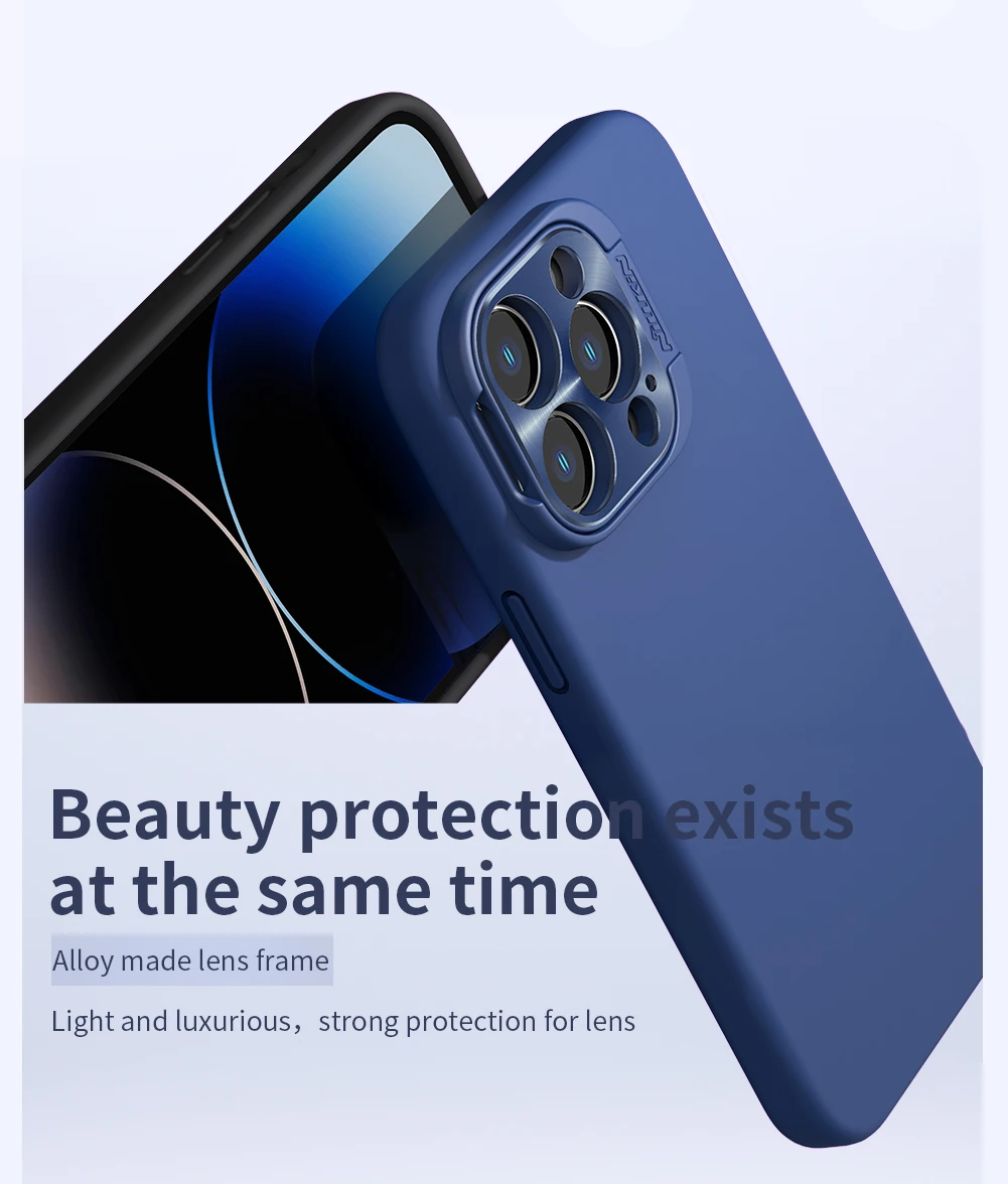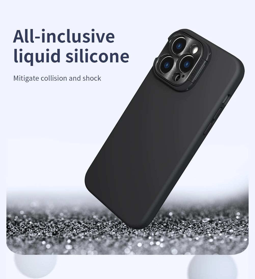 Comprar NILLKIN-funda de silicona suave para iPhone 15 ProMax, carcasa de ala de lente, soporte plegable, protección de lente, 14 pro Max