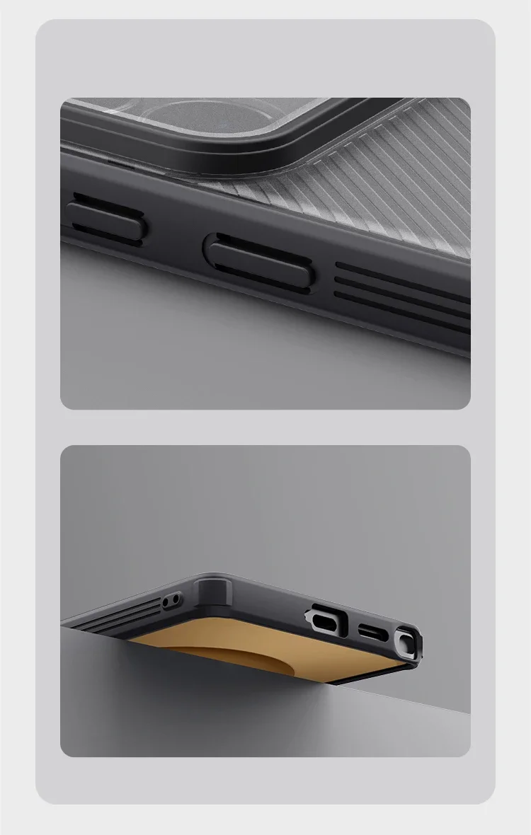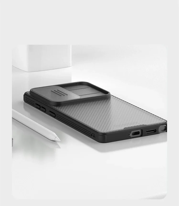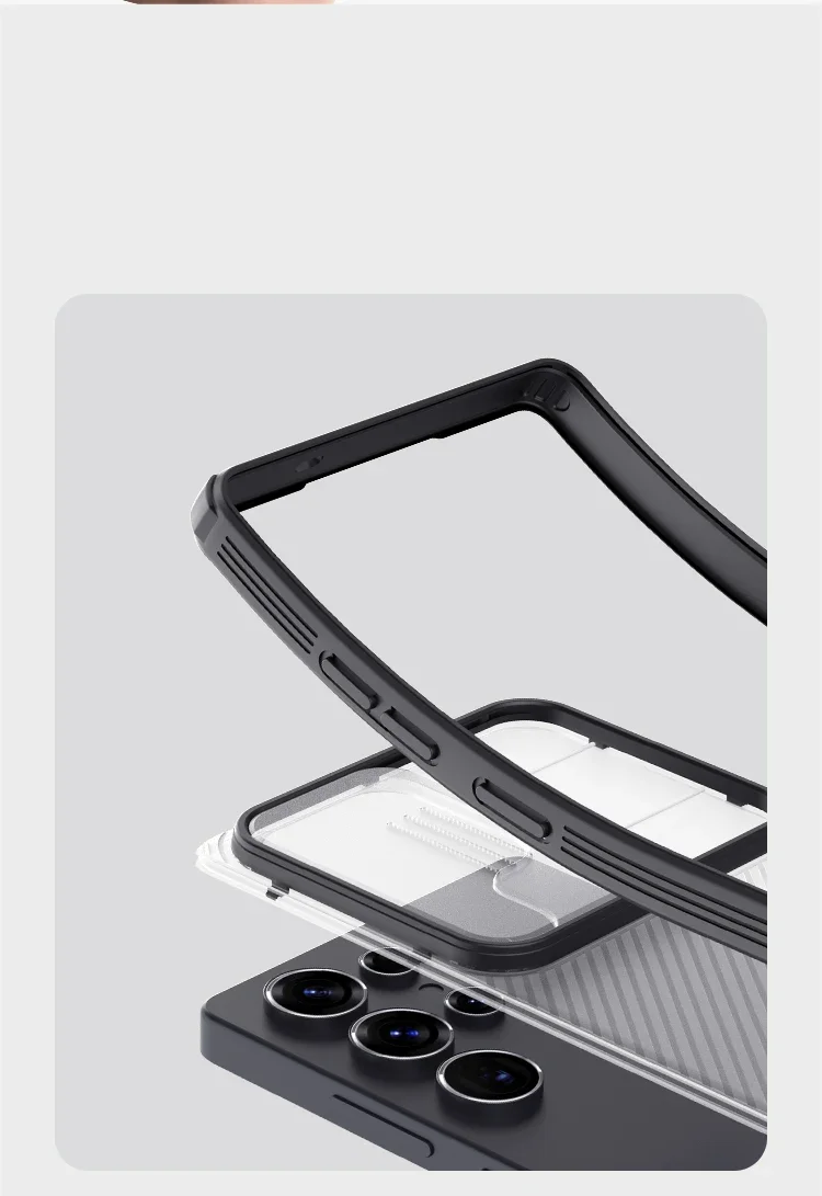 NILLKIN para Samsung Galaxy S25 Ultra funda CamShield Pro transparente negro cámara cubierta deslizante bordes suaves protección contraportada