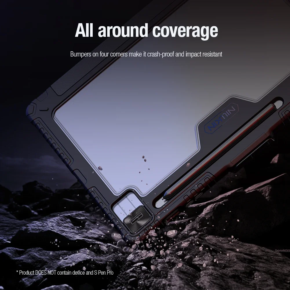 Nillkin para Samsung Galaxy Tab S9 Plus S10 FE Plus S10 Ultra Armor parachoques de cuero cámara deslizante Auto Wake Flip Protector cubierta