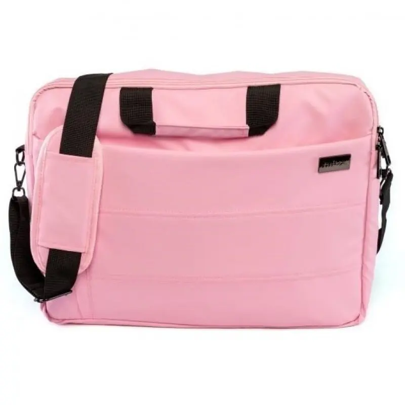 Maletín para portátiles de hasta 15.6 ” de color rosa. Sus tres amplios compartimentos te permitirán llevar contigo tu laptop y todos los accesorios que necesites para tu trabajo de manera ordenada.
