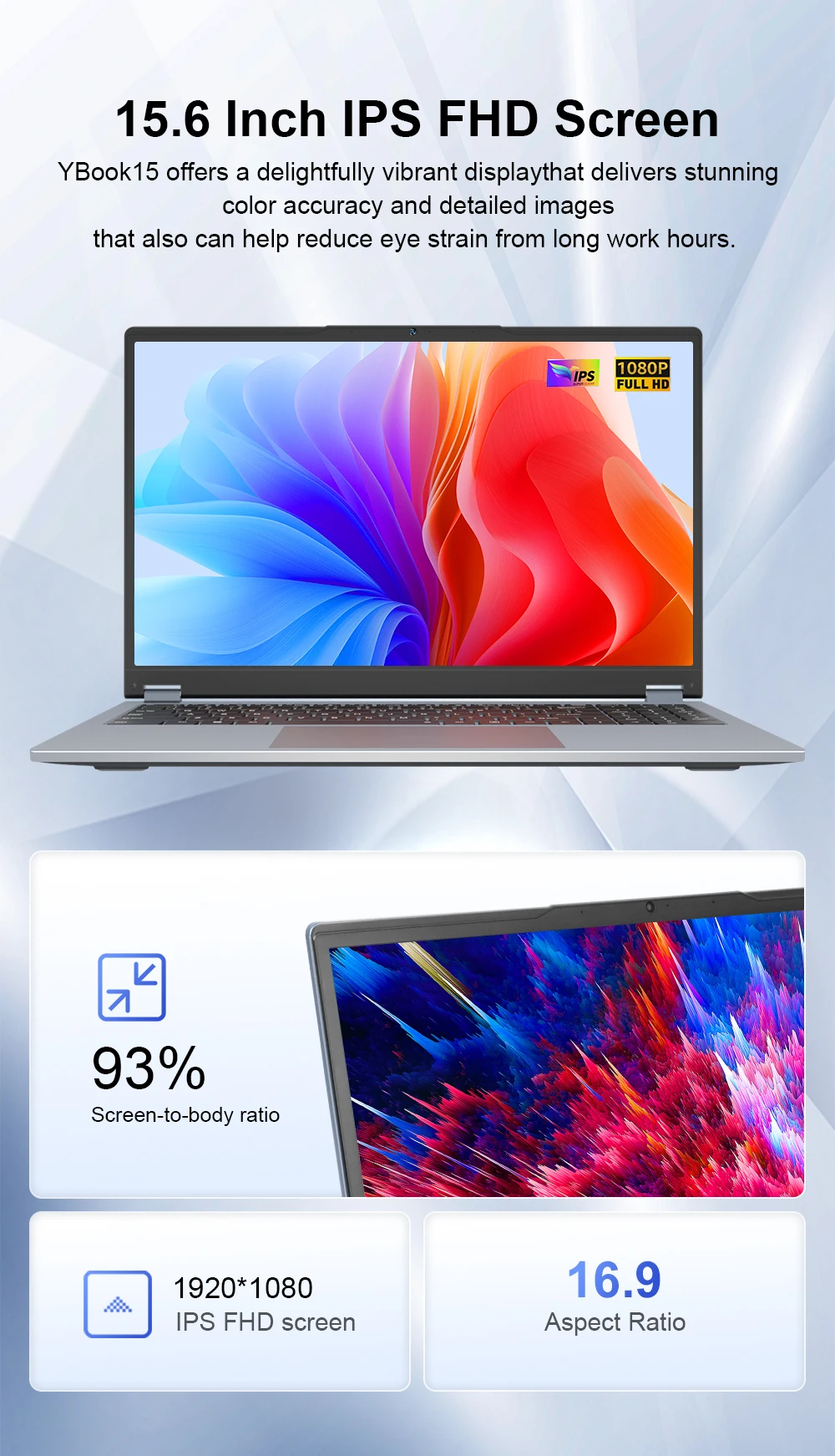 ☆ Enjoy a spacious 15.6-inch display with a 93% screen-to-body ratio and a modern 16:9 aspect ratio, offering a wider, more immersive viewing experience — perfect for movies, gaming, and productivity