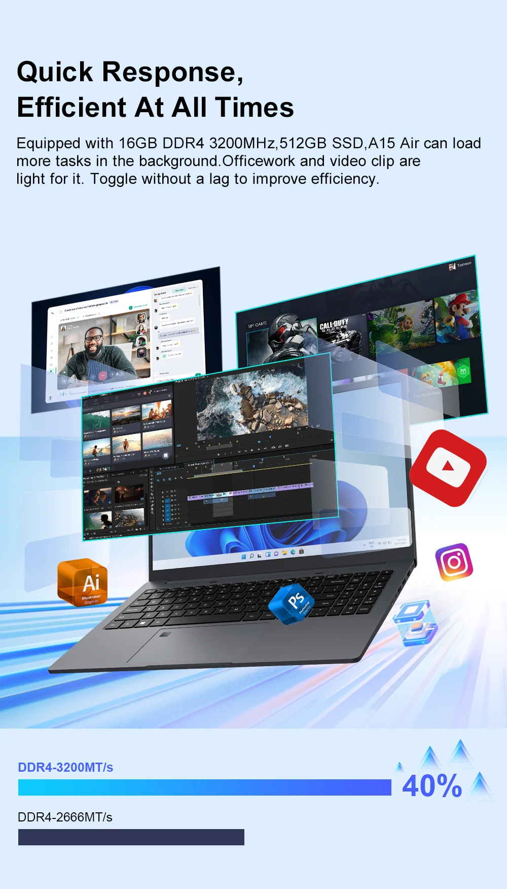 ●16 GB de RAM + 512 GB de SSD-Listo para sus necesidades de almacenamiento y aumenta su productividad