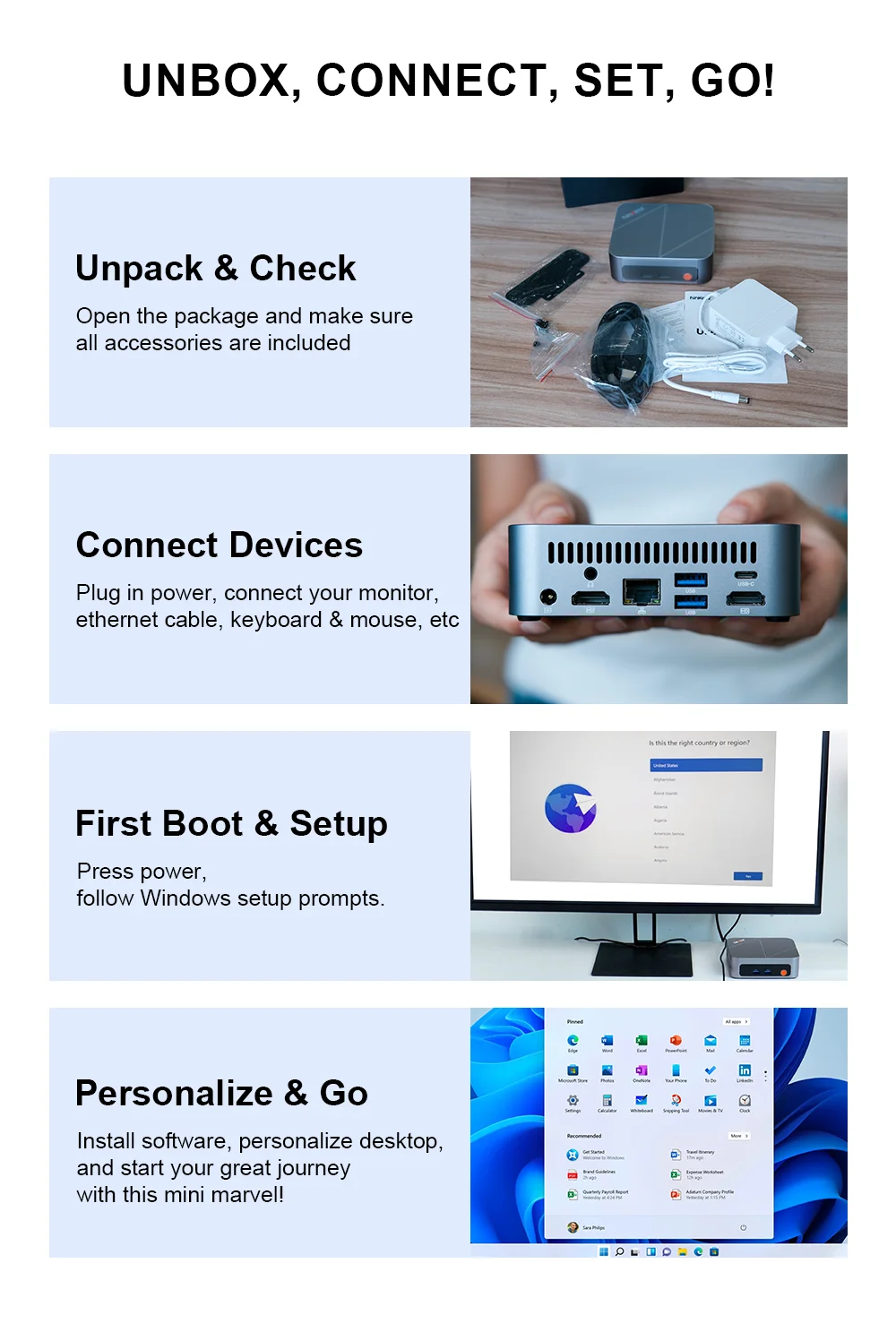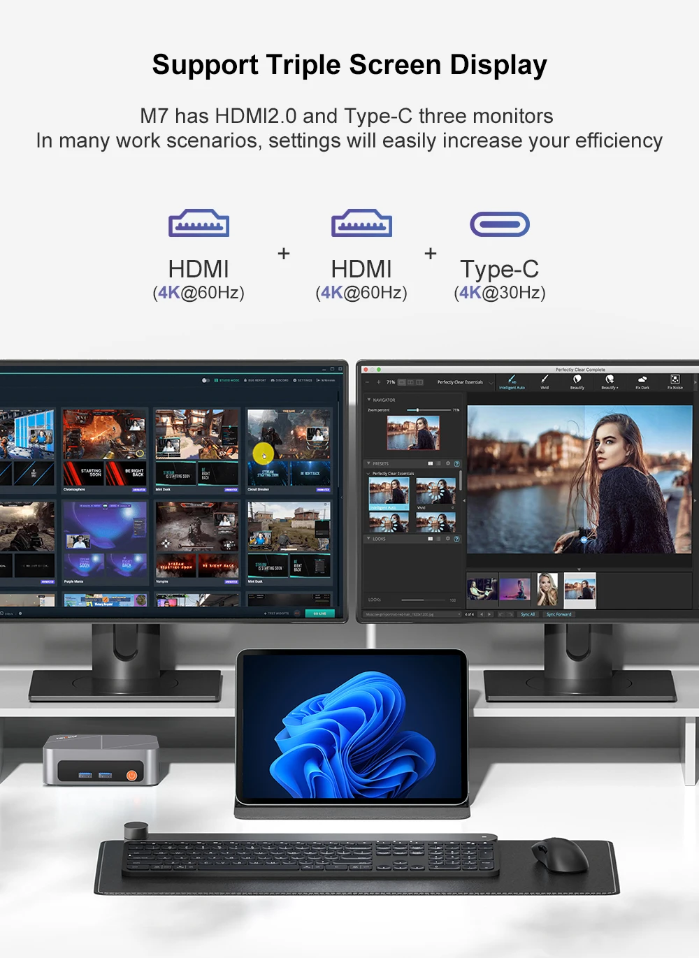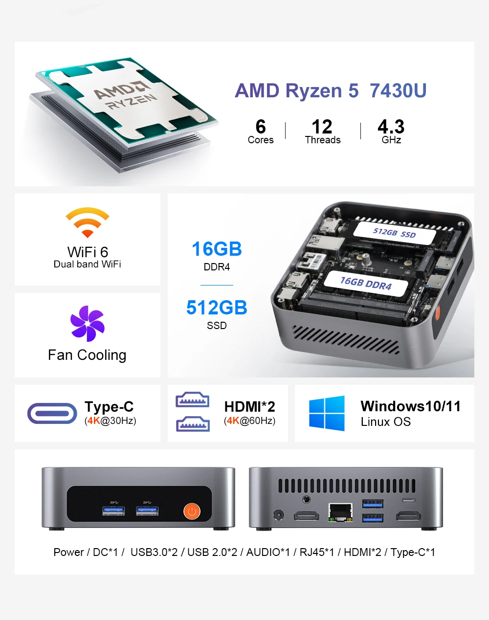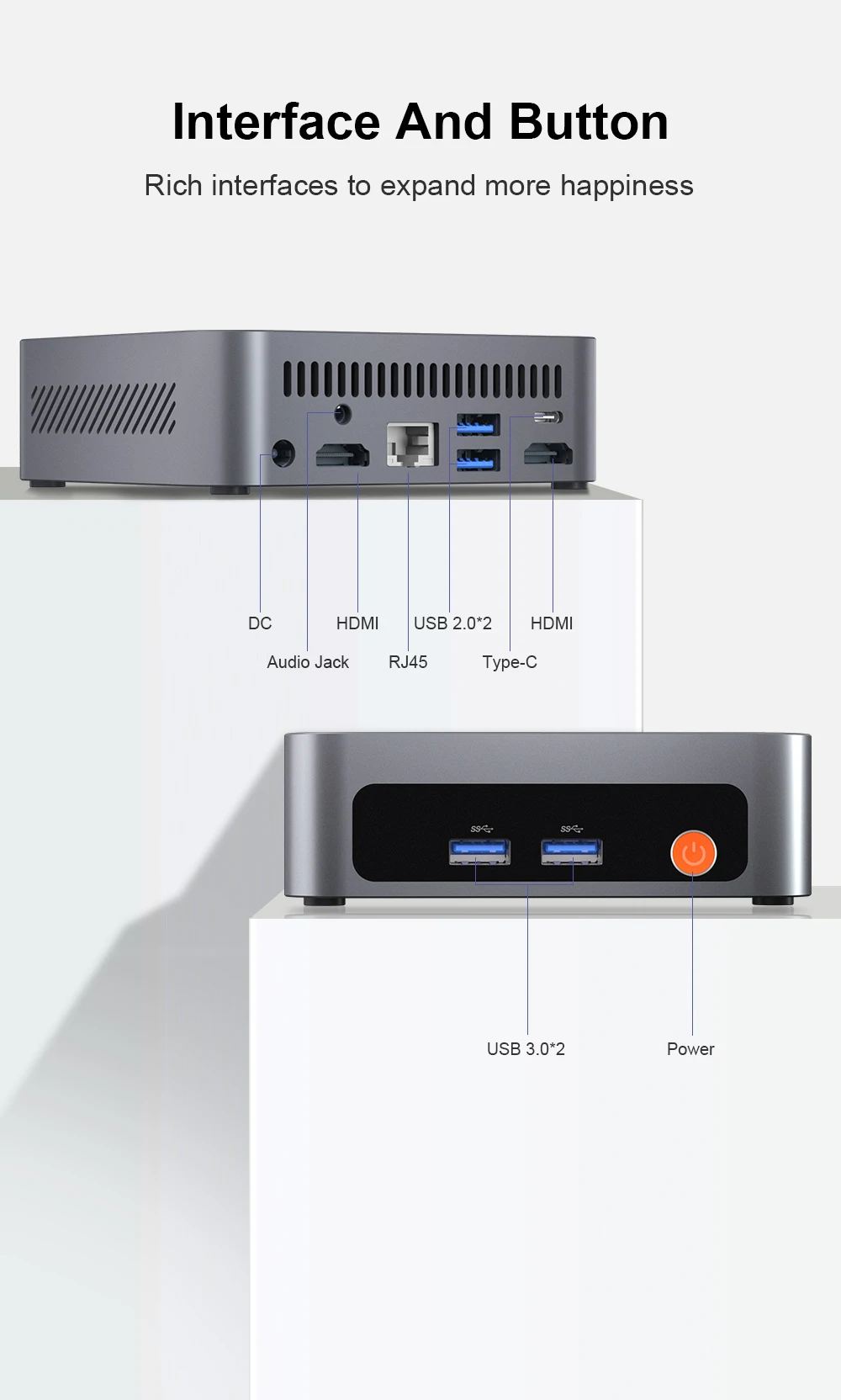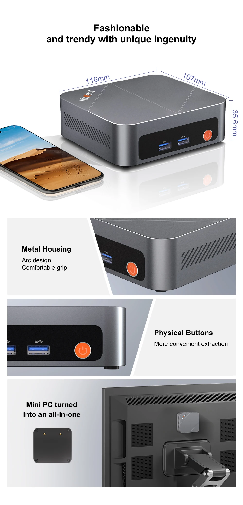 ¡Diga adiós al retraso y al desorden!⚡ Esta Mini PC compacta te permitemultitarea como un profesional💻, conecta cualquier cosa que necesites🔌y mantenerse fresco bajo presión❄️—todo en un diseño elegante y con estilo.Enciende tutrabajo, juego y creatividad.🎨🎮¡ hoy!