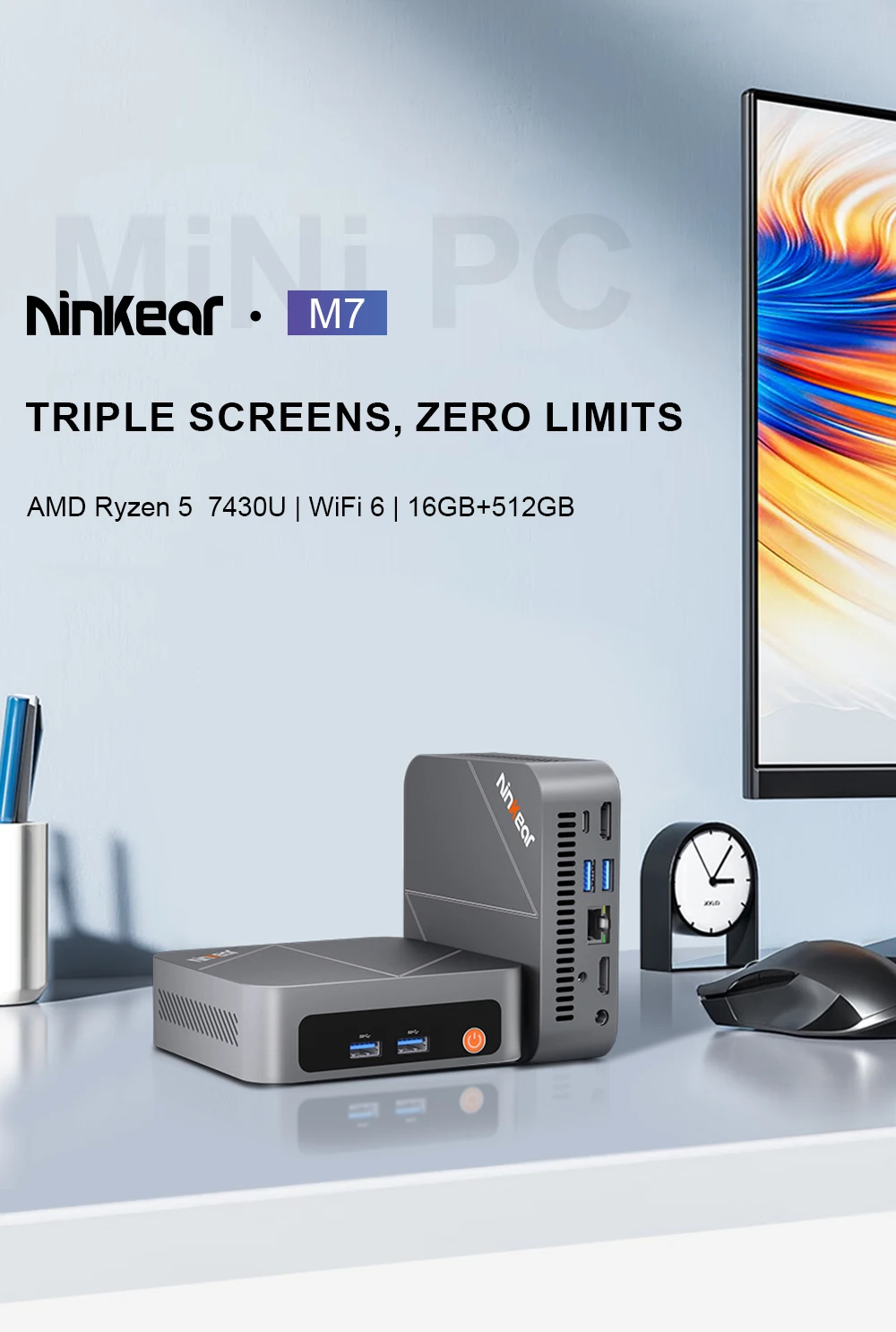 Comprar Ninkear M7 Mini PC AMD R5 7430U hasta 4,3 GHz 16GB DDR4+512GB SSD WiFi 6 BT 5,2 HDMI*2 Pantalla triple compatible con computadora Windows 11