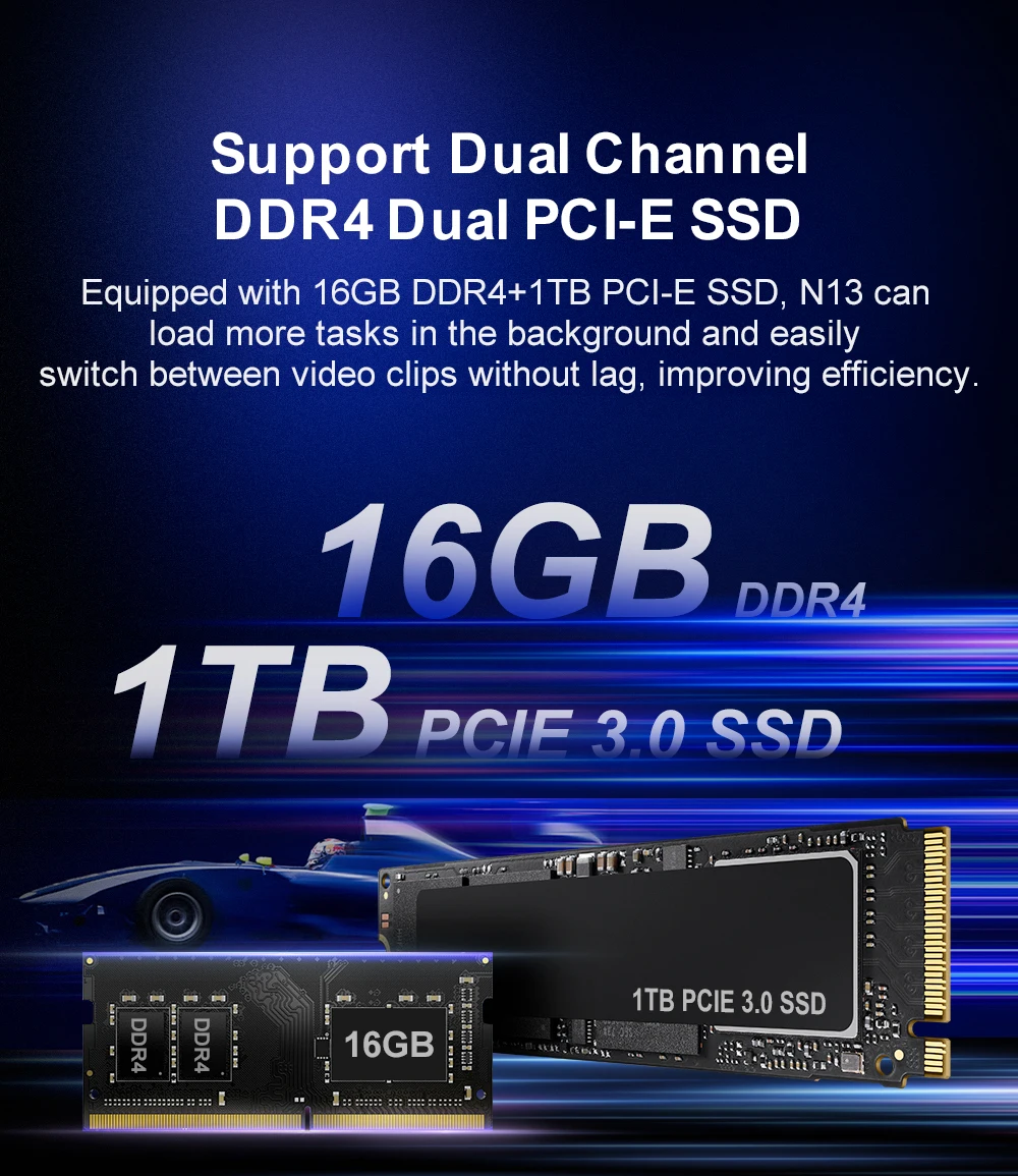El Ninkear MINI PC N13 es ideal para profesionales de negocios y trabajadores móviles con su cuerpo liviano, Potente rendimiento del procesador, solución de almacenamiento rápido y ricas opciones de conectividad. Ya sea para el trabajo diario o para jugar, el N13 ofrece una experiencia de usuario superior.