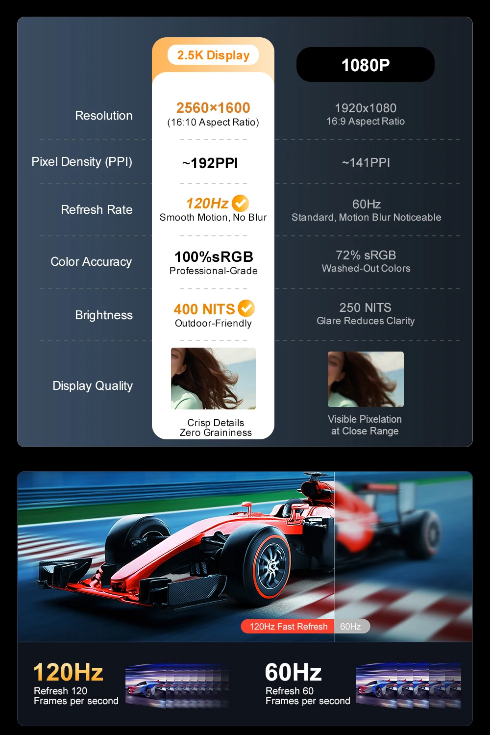 💯💯💯Actualización ultra alta de 120Hz: la frecuencia de actualización de los portátiles es tan alta como 120Hz. En comparación con la frecuencia de actualización normal de 60Hz, la pantalla de alta actualización puede proporcionar una imagen más natural y clara. Incluso al ver vídeos con lentes de alta velocidad, puede obtener una experiencia visual más fluida. Para los usuarios, una alta frecuencia de actualización tiene una experiencia muy diferente, lo que puede reducir la congelación de la pantalla y la fatiga visual, mejorando así en gran medida la eficiencia.