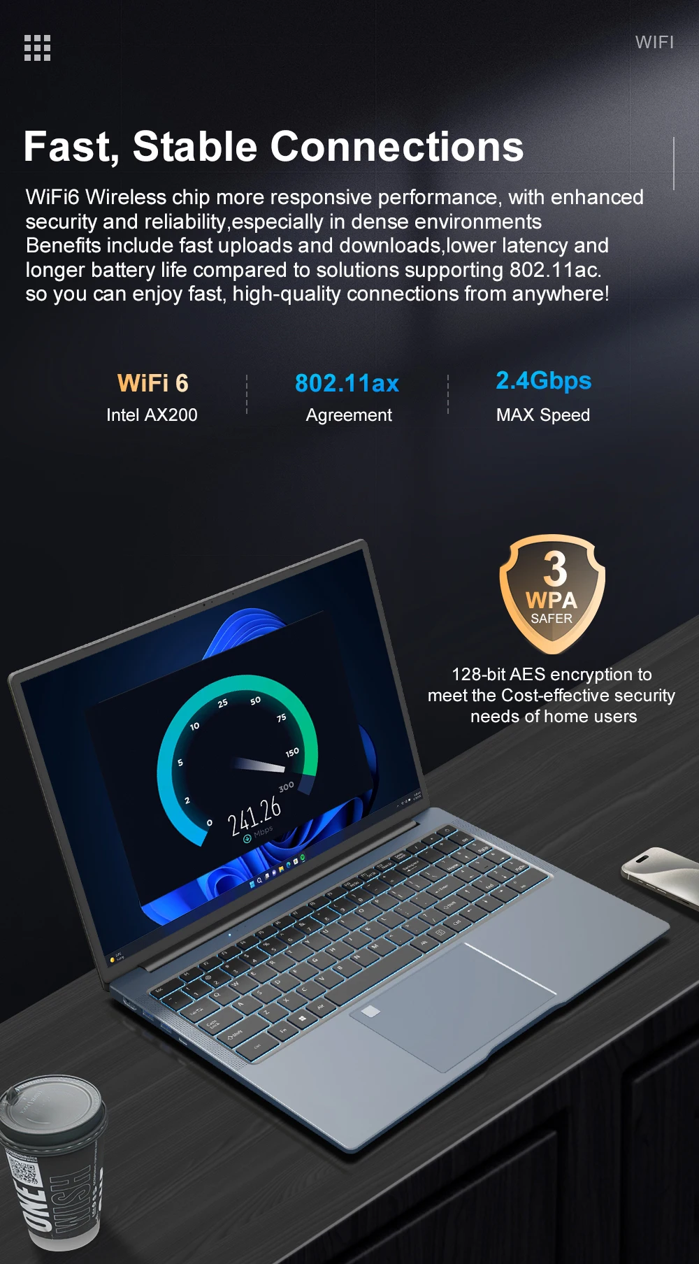 ✨✨✨Transmisión relámpago WiFi 6: El portátil adopta la última función WiFi 6, que aumenta la velocidad de transmisión en un 274% en comparación con WiFi 5. Adopta la última tecnología del algoritmo 802.11ax, que mejora en gran medida la eficiencia y reduce significativamente la latencia. Además de una eficiencia de transmisión mejorada, WiFi 6 tiene un menor consumo de energía, una transmisión más estable y datos más seguros. Asegúrate de que vaya muy bien durante el uso.