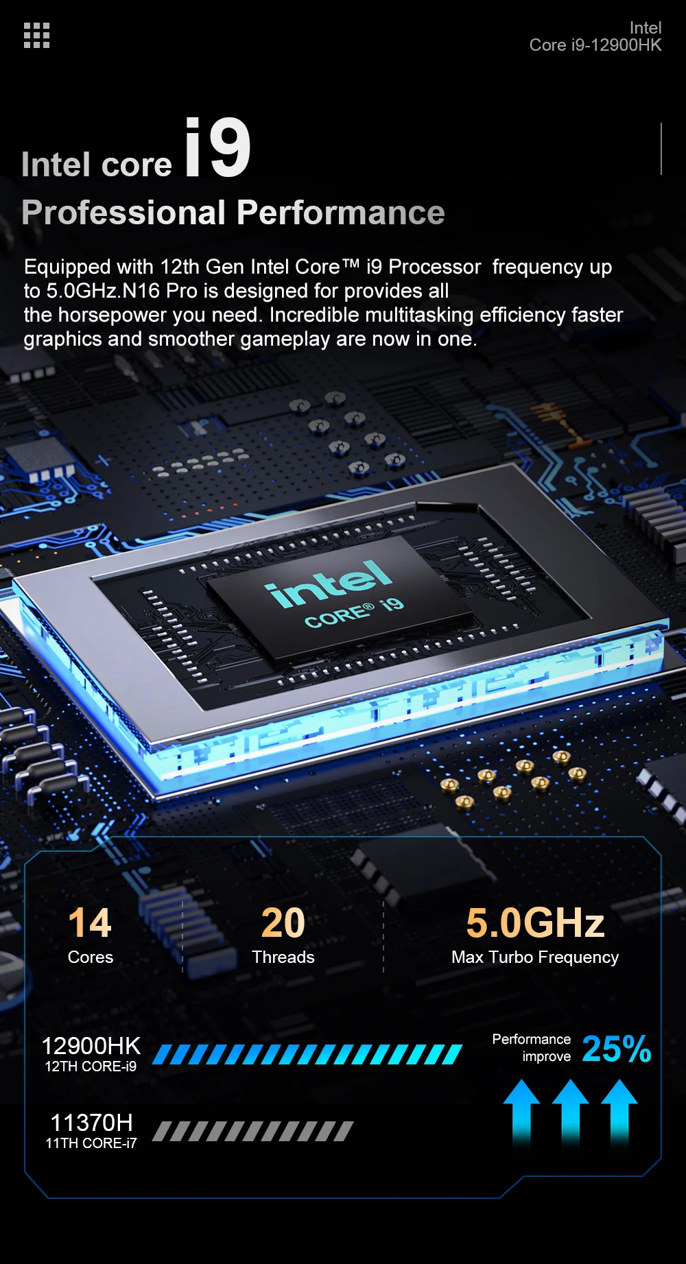 🤩🤩🤩Potencia de procesamiento profesional: el chip del portátil N16 PRO es el procesador Core de 13ª generación, con 14 núcleos y 20 hilos, y la frecuencia turbo puede ser de hasta 5,0 Ghz. 24MB de caché L3 con 45W TDP admite una memoria máxima de 64GB. 12900HX funciona muy bien en el manejo de tareas de alta carga, aceleración Turbo, juegos y diseño gráfico. Las aplicaciones complejas también se pueden procesar fácilmente sin preocuparse por la eficiencia del trabajo.