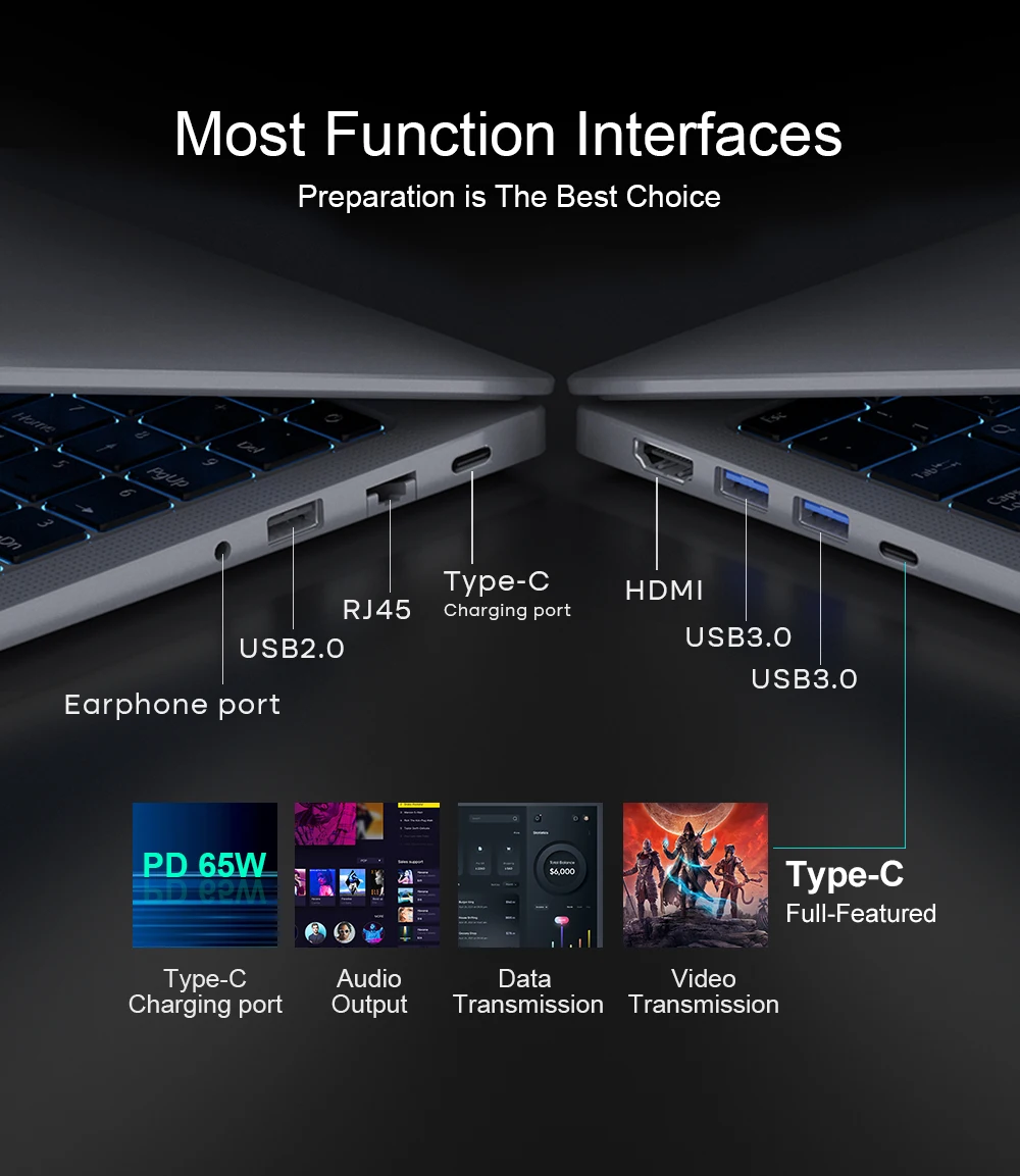 Configuración de puertos ricos, incluyendo USB2.0, USB3.0, HDMI, (solo función completa y carga), RJ45, etc., para satisfacer las necesidades de varios dispositivos externos. Admite expansión PCI-E m.2 2280 SSD adicional, hasta 4TB, proporcionando un amplio espacio de almacenamiento. Especialmente adecuado para usuarios que necesitan conectar múltiples dispositivos externos, como fotógrafos, músicos y aquellos que planean actualizar el hardware en el futuro para cumplir con los requisitos de mayor rendimiento.