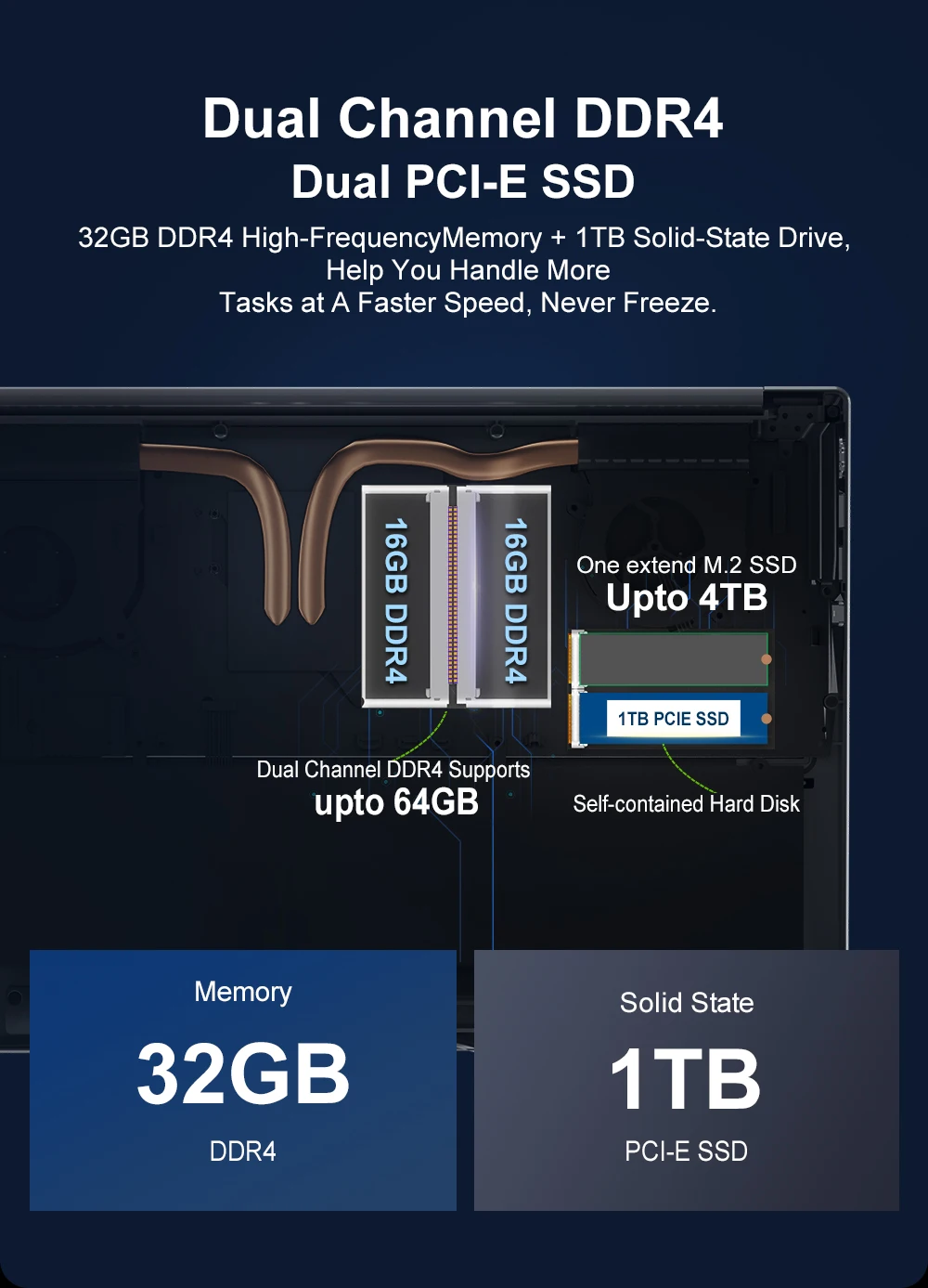Equipado con un procesador Intel Core de alto rendimiento, Memoria DDR4 de 32GB y 1TB PCI-E SSD, demuestra excelentes capacidades de computación y almacenamiento y está diseñado para profesionales que buscan el máximo rendimiento, entusiastas de los juegos y gente de negocios con necesidades de oficina eficientes.