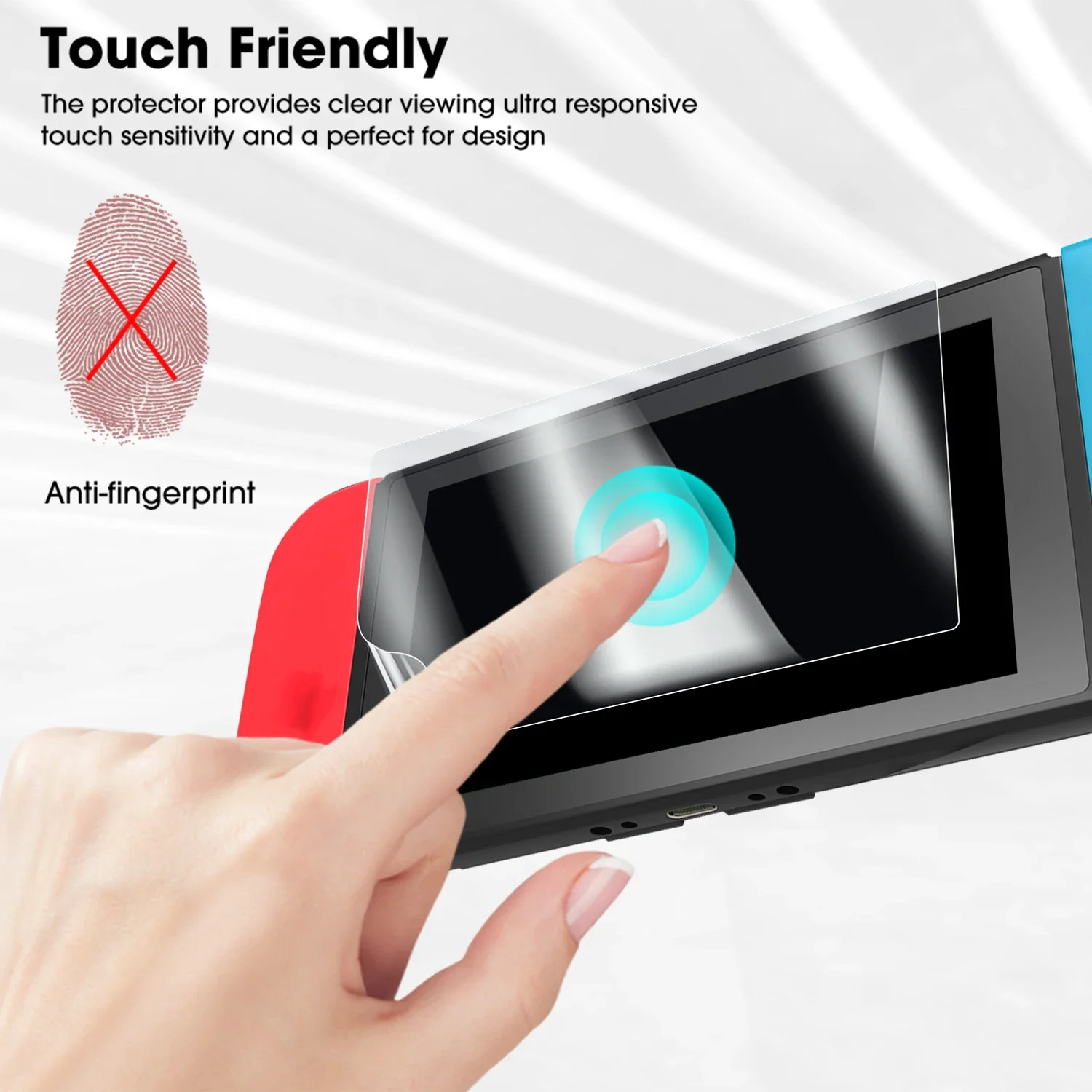 [Diseño transparente HD]: esta película suave PET de la serie Nintend Switch está hecha de material PET transparente HD, que se adapta perfectamente a la pantalla sin afectar el efecto de visualización, de modo que la pantalla de su juego siempre permanezca clara y brillante.