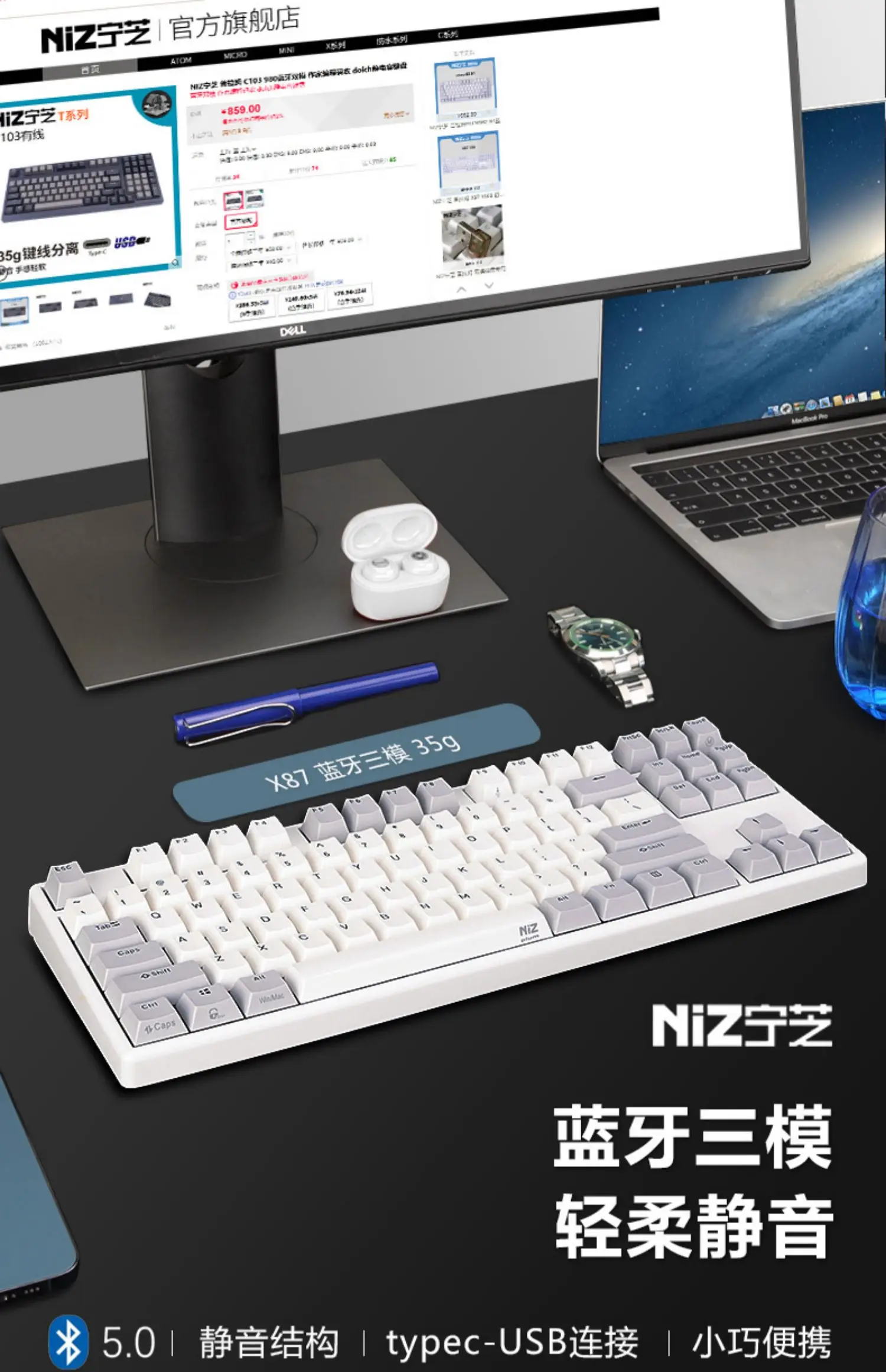 NIZ Plum X87 108 Teclado de capacitancia estática Estructura silenciosa Programable Ejustable Keyway Cableado/5, Bluetooth Tri-modo Oficina