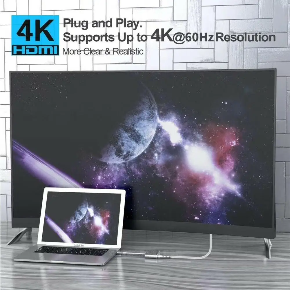 HDTV USB C a VGA: el puerto HD admite hasta 4K UHD 3840 × 2160 @ 30Hz, pantalla VGA hasta 1080P @ 60Hz Full HD. Cuando los dos puertos funcionan al mismo tiempo, la resolución máxima de los dos puertos es 1920x1080P @ 60Hz;