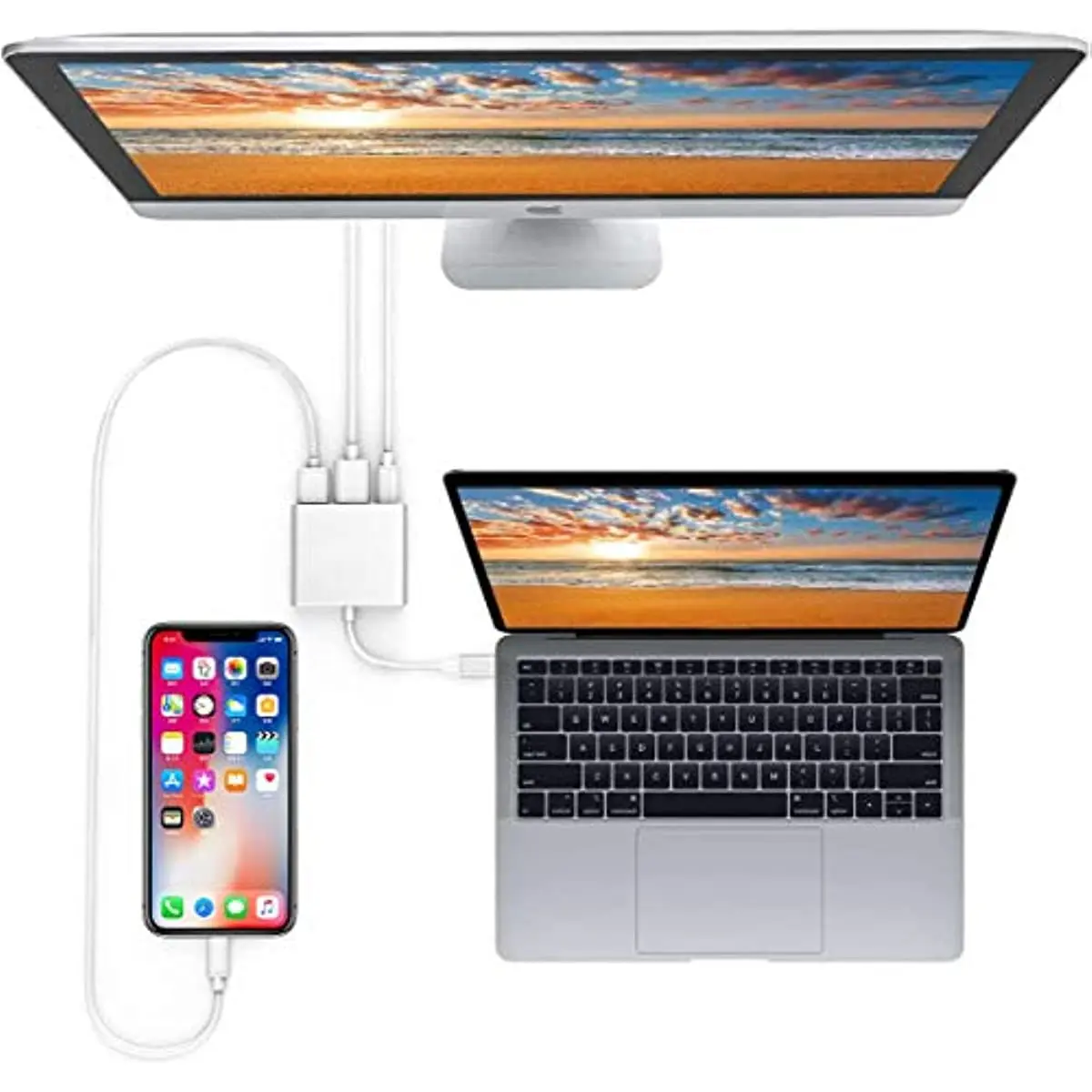 Comprar Nku-puerto de carga USB tipo C Thunderbolt 3, concentrador 3 en 1 para ordenador portátil, Macbook Air, Ipad Pro, 4K, UHD + USB 3,1 + PD