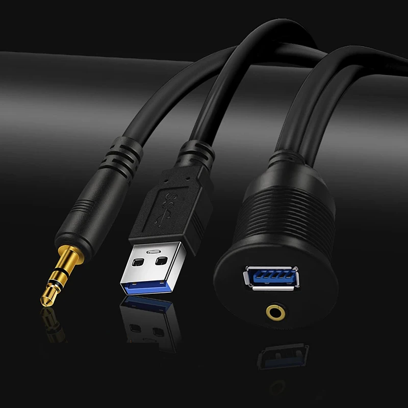 Conectores chapados en oro de 3,5 mm y enchufe USB 3.0 estándar con accesorios como tornillos, soporte, componentes de montaje empotrado y tapa para instalación en el tablero u otra superficie