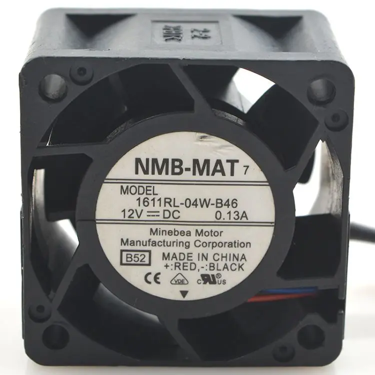 Description: The NMB 1611RL-04W-B46 is a high-performance 40mm x 28mm DC 12V cooling fan designed for demanding applications such as servers, networking equipment, and industrial electronics. Featuring dual ball bearings and a specialized high-speed IC, this fan delivers efficient cooling with stable airflow. With a power draw of just 0.13A, it provides reliable thermal management in high-temperature environments. Key Features: Compact 40mm x 40mm x 28mm size for space-limited applications DC 12V operation with low 0.13A power consumption High-performance dual ball bearing system for durability Optimized airflow for effective heat dissipation Built-in NMB-MAT high-speed IC for enhanced cooling efficiency Applications: Server cooling and data center airflow optimization Network switches, routers, and telecom equipment Industrial control systems and automation cooling High-temperature electronic enclosures and embedded systems