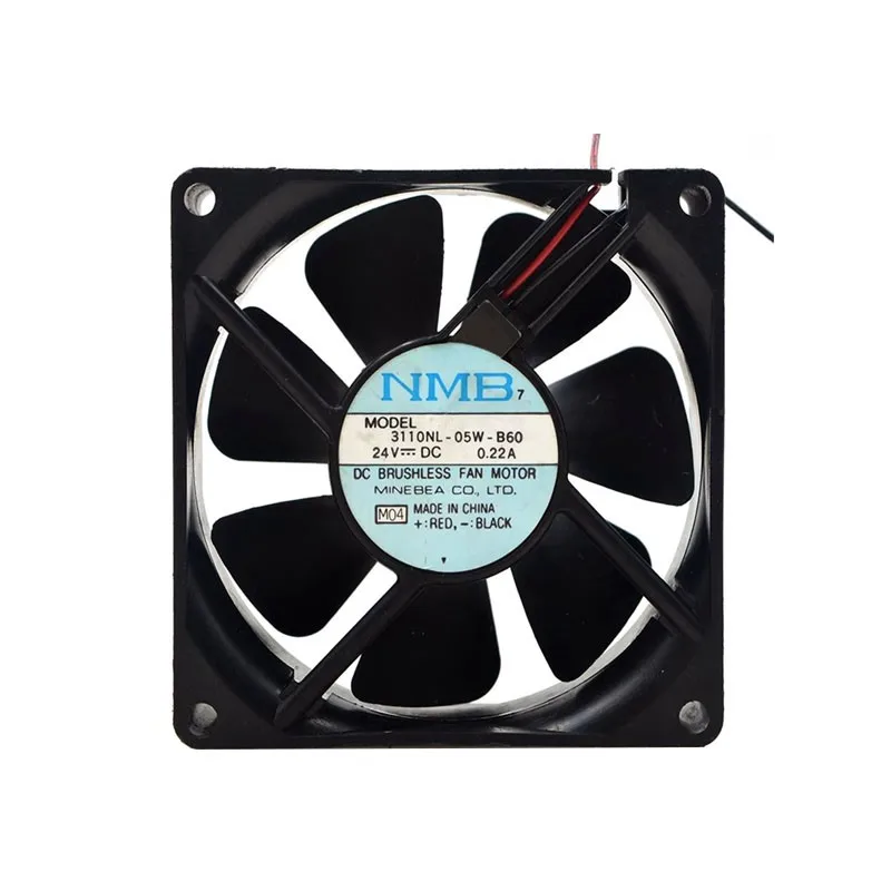 Product Description This high-performance 80x80x25mm industrial cooling fan (Model: 3110NL-05W-B60) from NMB is engineered for superior thermal management in demanding applications. Featuring high-precision, maintenance-free dual ball bearings and locked rotor protection, it ensures reliable, long-lasting performance and safeguards against fan failure. Key Selling Points: Exceptional Airflow & Pressure: Delivers a powerful 68.33 CFM (1.93 m³/min) of airflow and 0.37 In-H2O of static pressure, effectively dissipating heat from critical components. Built-in Locked Rotor Protection: Features a crucial safety mechanism to prevent motor damage in case of fan blade obstruction, enhancing longevity and system integrity. Durable Dual Ball Bearings: Utilizes high-precision, maintenance-free dual ball bearings, guaranteeing an impressive operational lifespan of up to 40,000 hours. Wide Operating Temperature Range: Functions reliably in environments from -15℃ to 65℃, making it suitable for demanding industrial and electronic settings. Efficient Power Consumption: Operates at 24V with a low current draw of 0.22A, consuming only 5.28W of power. Application Areas: This versatile industrial cooling fan is ideal for variable frequency drives (VFDs), inverter cooling, cabinet ventilation, power supply cooling, server rack cooling, industrial equipment cooling, and other applications requiring robust thermal management solutions and forced air cooling.