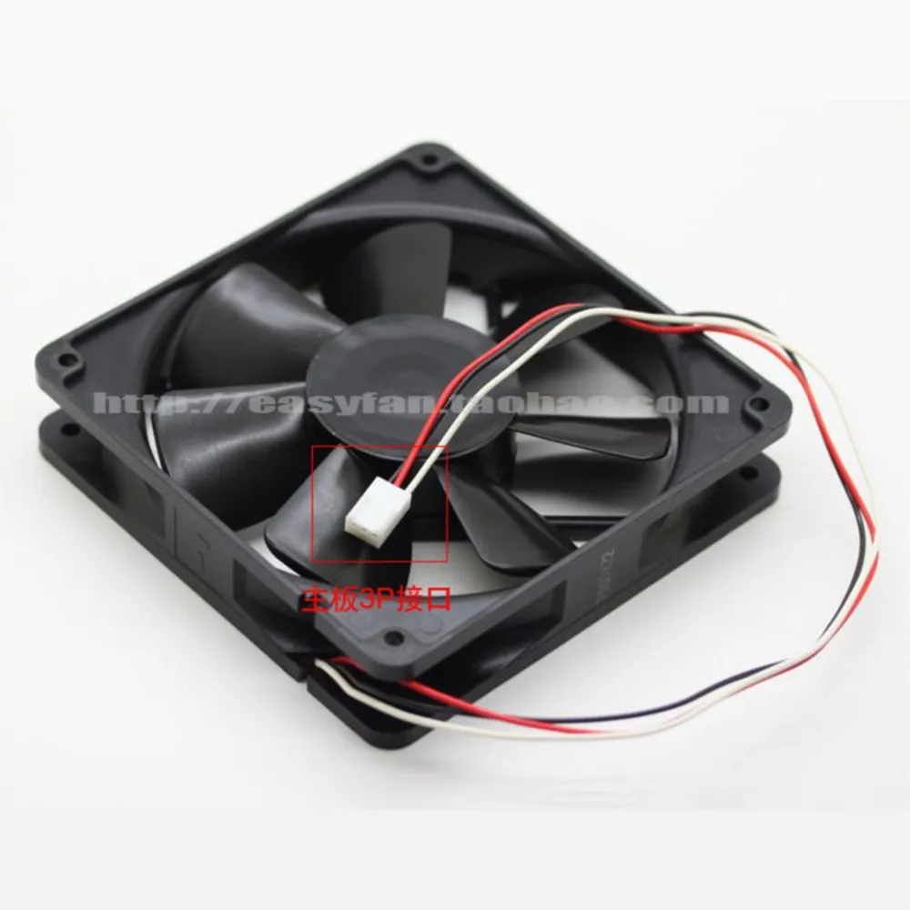 Product model: 4710NL-04W-B59 Appearance size: 120 × 120 × 25mm Center hole distance: 105x105mm Speed reference: 3500 ± 10%rpm Bearing type: double ball bearing Service life: 50000 hours Noise reference: 42dBA Rated voltage: 12V Rated current: 0.74A Air volume reference: 89cfm Speed measurement function: not supported PWM function: not supported Interface type: 3pin port of main board, (cable length 30cm) please contact us for other interfaces Fan origin: China Packing type: industrial large box packing, no single packing Single net weight: 168g Caution: Black negative, red positive, white stop alarm function