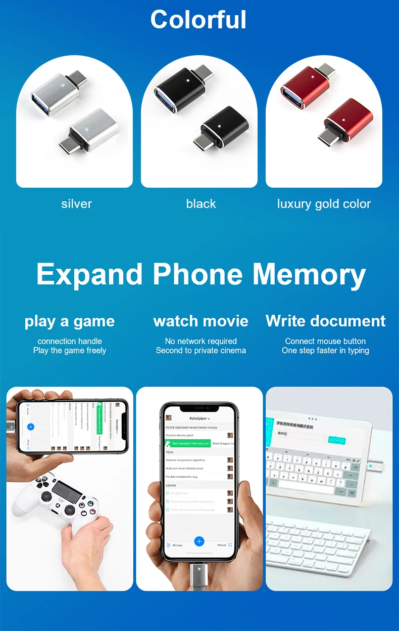 1.Característica con USB3.0 que se convierte en función de puerto tipo C-B, lee los datos de los dispositivos directamente