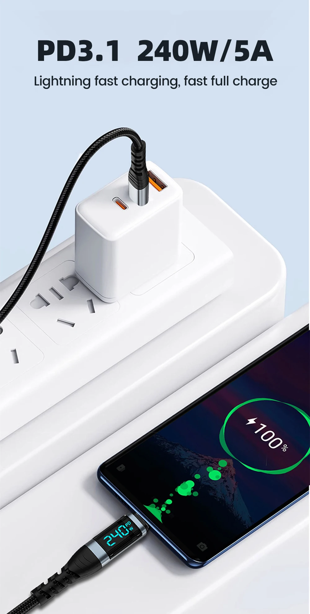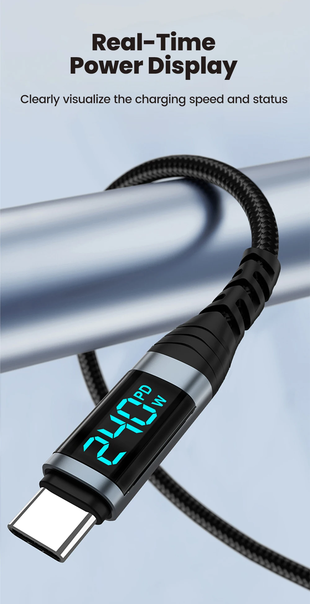 Comprar NNBILI 240W tipo C a tipo C Cable de pantalla Digital súper carga 0,5 m-2m Cable de datos USB C para Iphone 15 16 Samsung Huawei Xiaomi