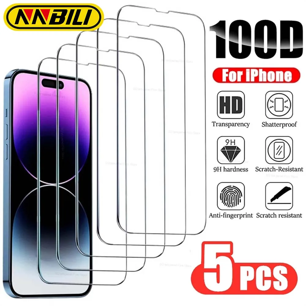 Comprar NNBILI 5 uds vidrio templado para IPhone 14 13 12 11 Pro Max Protector de pantalla para IPhone 12 13Mini 7 8 Plus SE X XS XR 14Pro vidrio