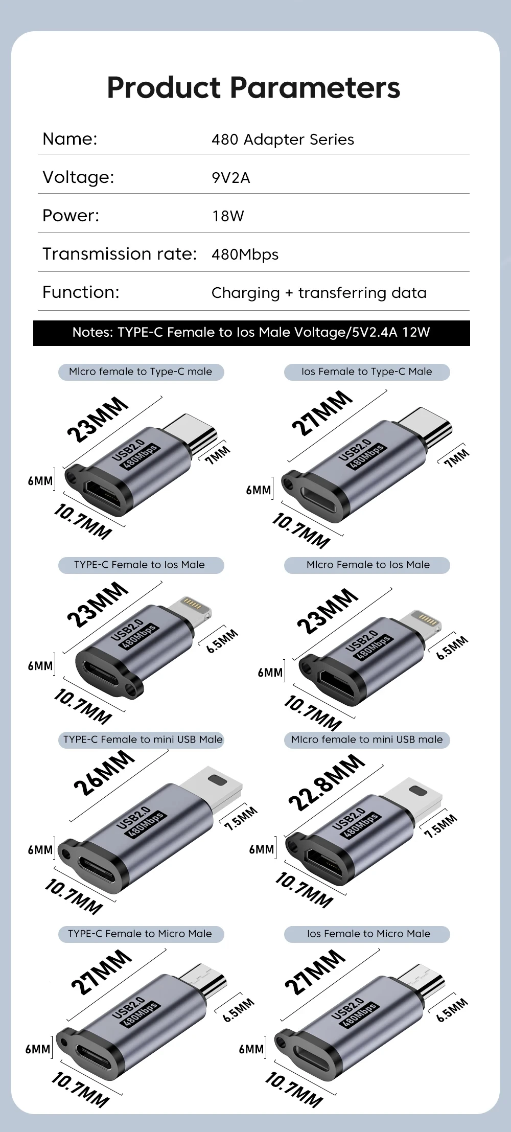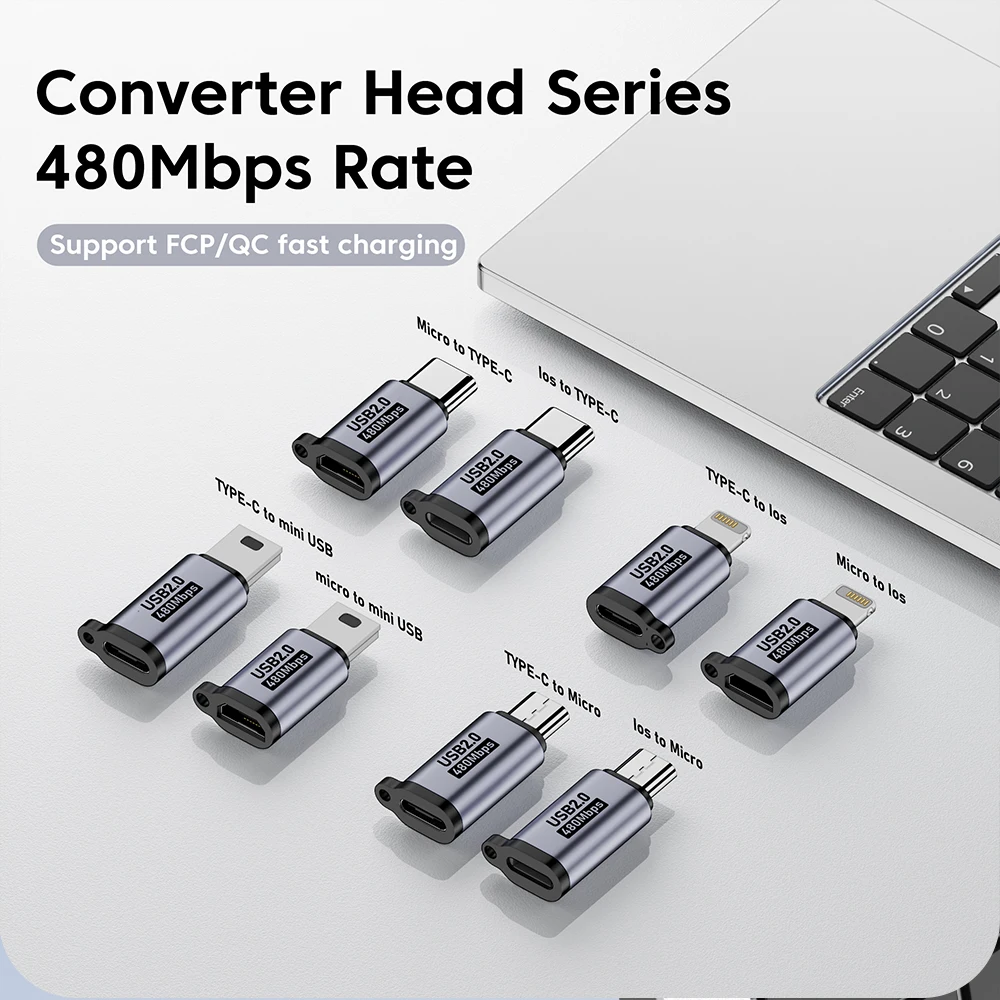 NNBILI 5V 2.4A 2 uds 8 tipos tipo C a adaptador iOS para iPhone Micro USB a USB C 480Mbps carga transferencia de datos IOS a Micro USB