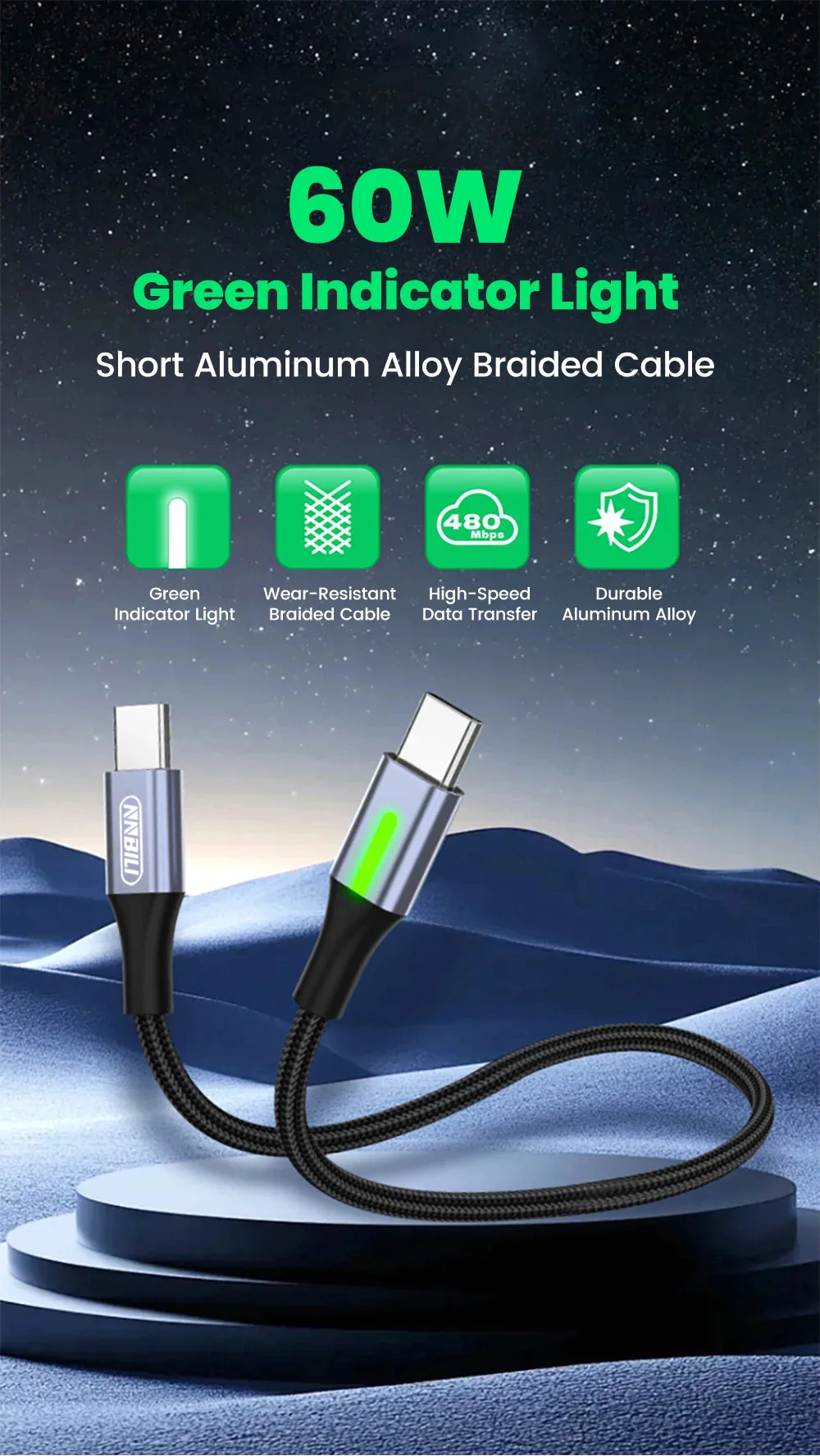 NNBILI 60W carga súper rápida USB USB C a tipo C 0,25 m-0,5 m banco de energía Cable corto iluminación Cable de teléfono para Iphone 16 17 Samsung
