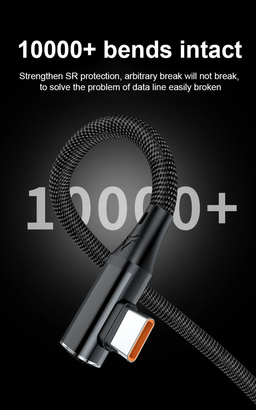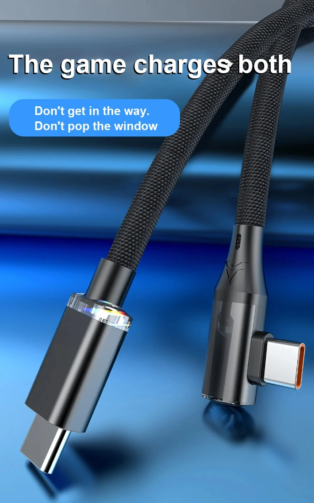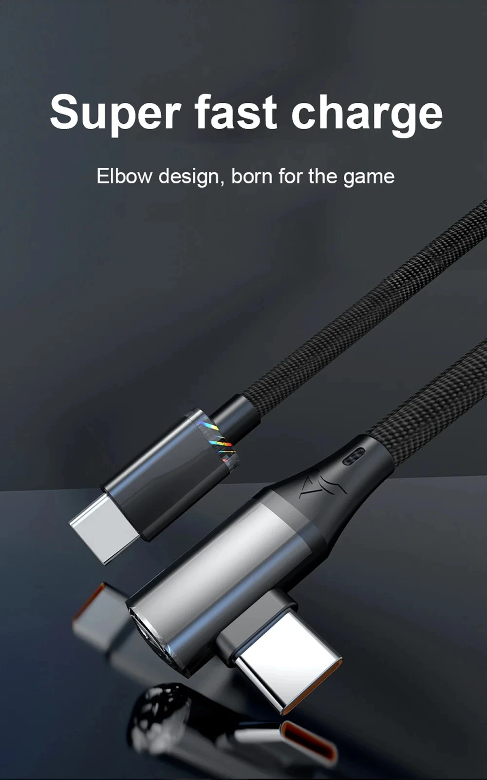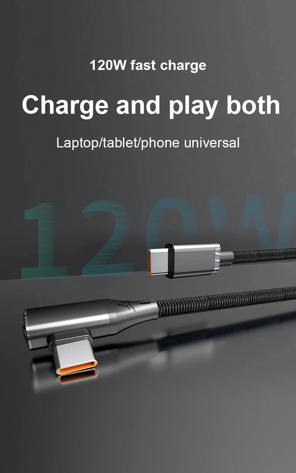 [Cable de carga rápida con codo de 120 W]Carga rápida PD 120W, diseño de codo de 90 grados, chip de protección segura, luz indicadora inteligente