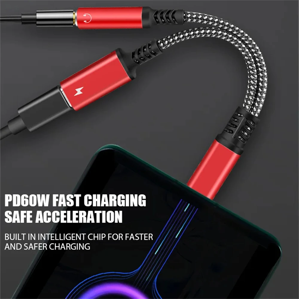 NNBILI 2 en 1 USBC a conector de auriculares de 3,5mm tipo C PD 60W adaptador auxiliar de Audio de carga para iPhone 15 iPad Pro Samsung S24 Xiaomi Huawei