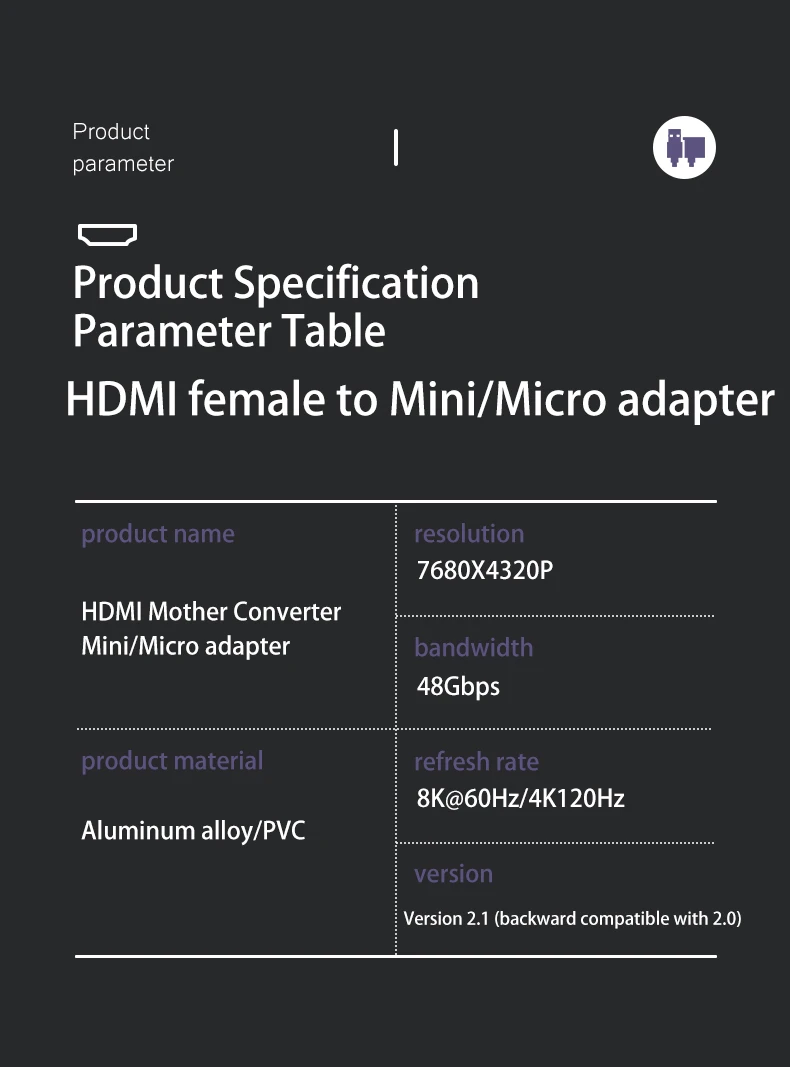 NNBILI-Adaptador de Cable 2,1, compatible con HDMI, 8K60HZ, 4K120HZ, convertidor HDMI2.0 de 48Gpbs para proyector HDTV, PS4, PS5, pantalla de ordenador portátil