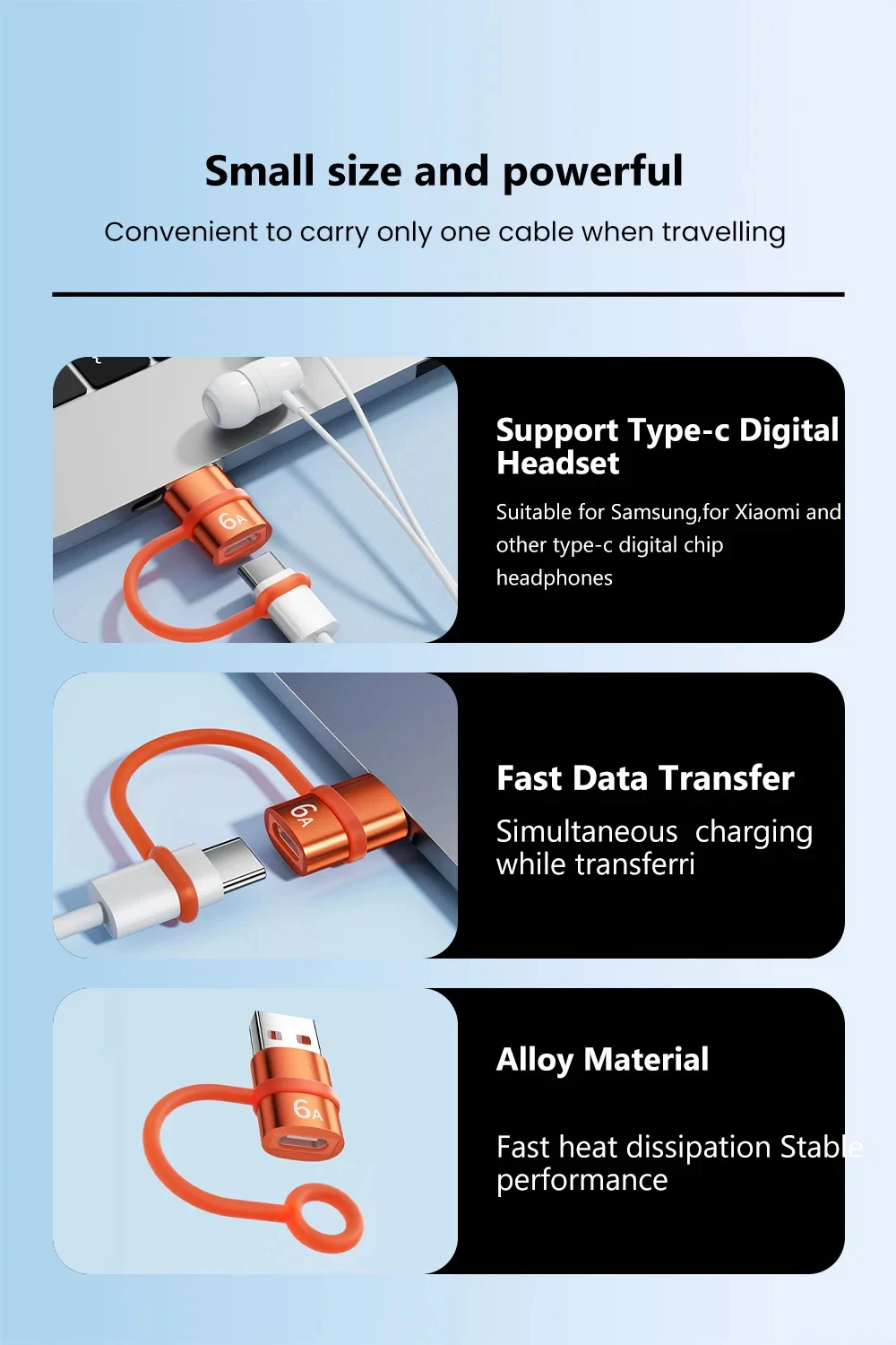 NNBILI-Adaptador USB 3,0 a tipo C, Conector de carga rápida hembra a USB macho, 6A, para ordenador portátil, Xiaomi, Samsung, Otg