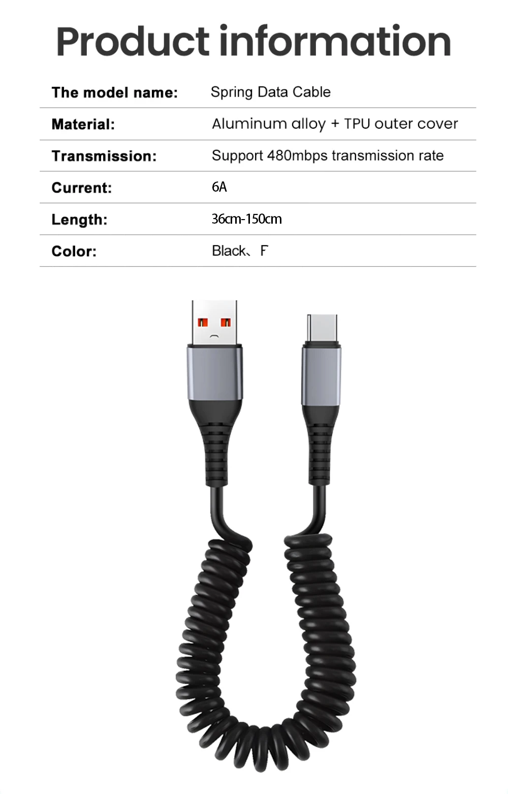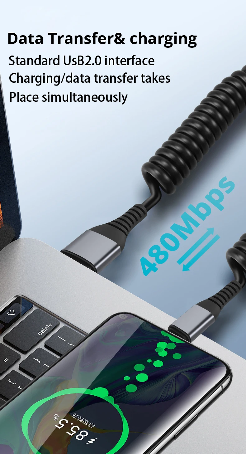 NNBILI Cable de carga rápida telescópico de 66W, cargador USB 6A, Cable tipo C, Cable de resorte de carga rápida para Huawei, Xiaomi, Samsung