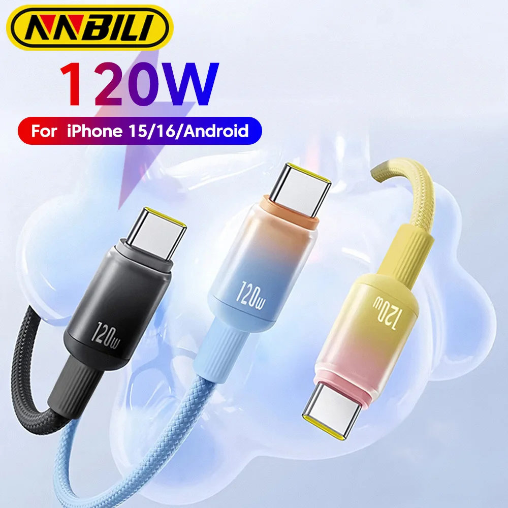 Comprar NNBILI Cable de datos de carga rápida de 120W Cable de C-C de carga rápida de nailon para iphone 15 16 huawei, USB a tipo C para Huawei OPPO