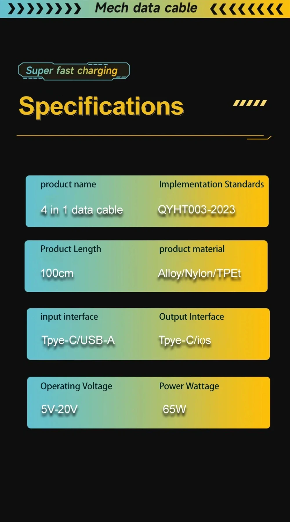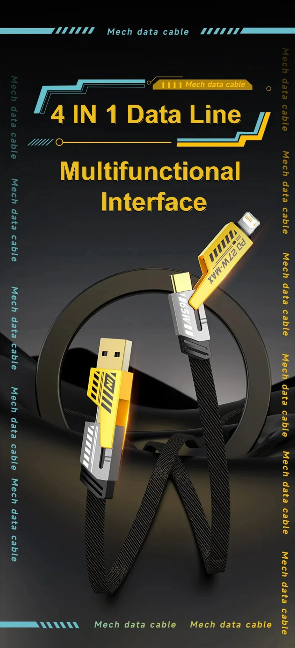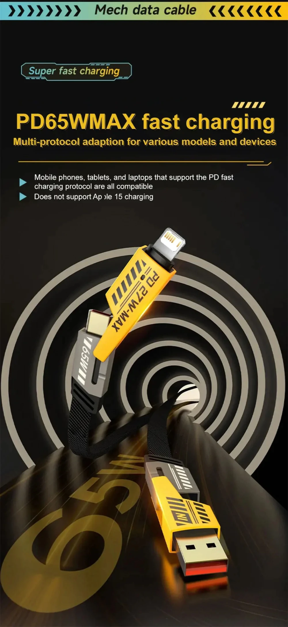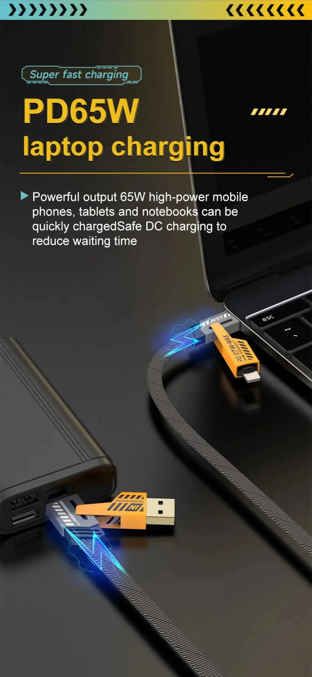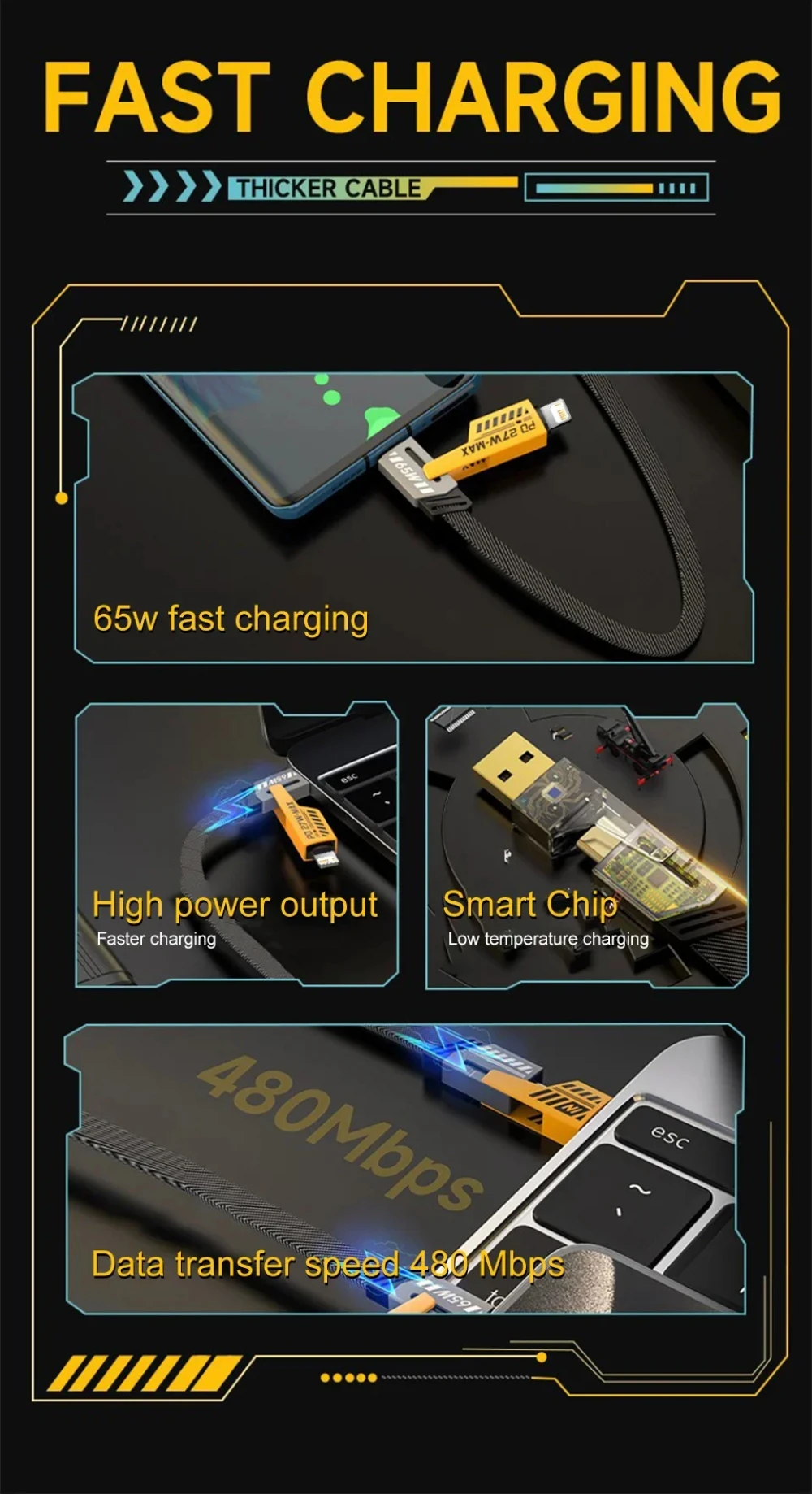 NNBILI Cable de datos rápido Convertible 4 en 1 tipo C PD 65W 27W USB C USB A Cable de carga múltiple para MacBook Pro/Samsung/Android