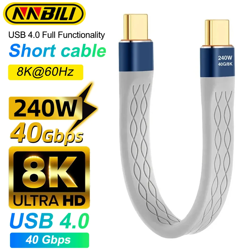 NNBILI nuevo USB4.0 40Gbps Cable DE DATOS PD 240W carga rápida USB C a tipo C Cable de Banco de energía corto USB C cargador 8K @ 60Hz Cable de datos