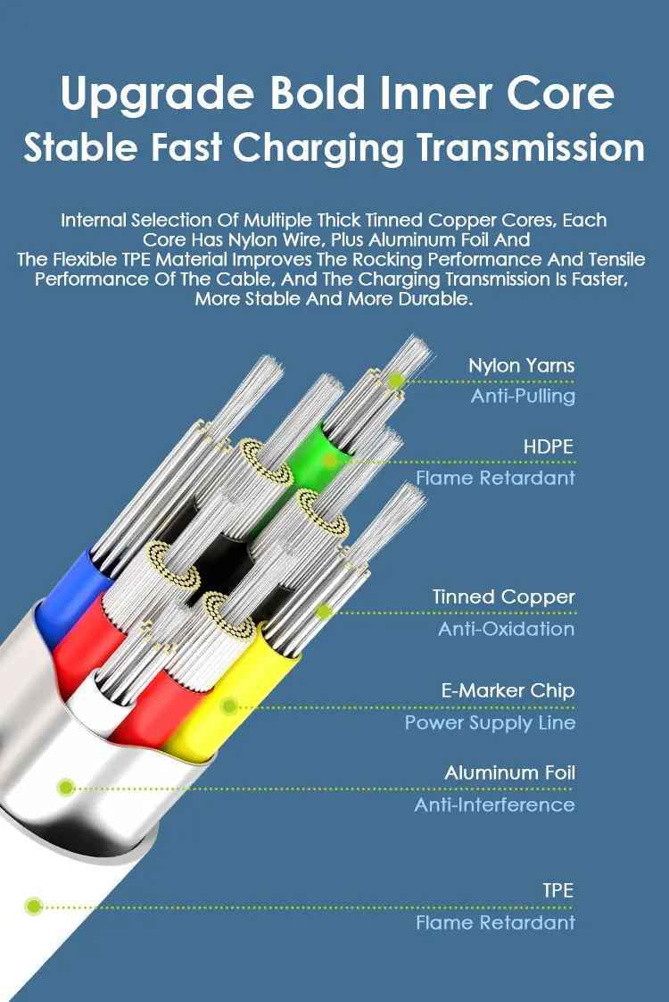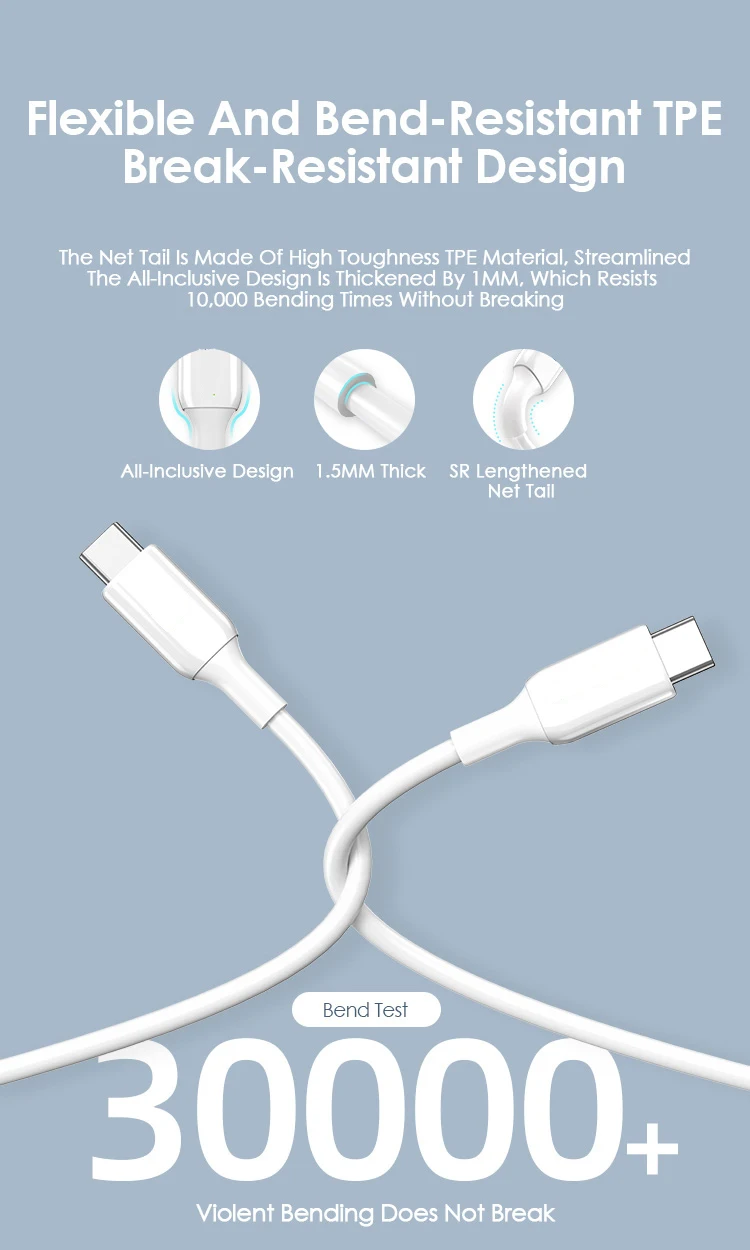Comprar NNBILI-Cable USB tipo C a tipo C, cargador de carga rápida, 5A, 100W, USB-C, PD, para Macbook, Samsung, Xiaomi