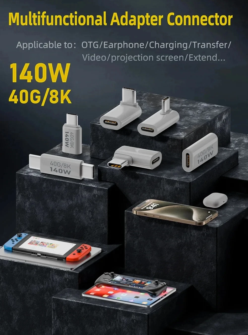 Comprar NNBILI PD140W USB C hembra a macho adaptador PD 3.1 Thunderbolt 3 40Gbps transferencia de datos 8K @ 60Hz conector de extensión para MacBook