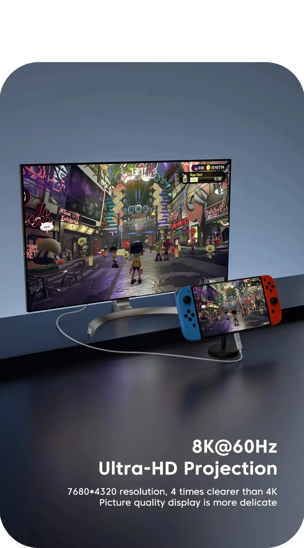 Mejore su experiencia visual con nuestro adaptador HD de 8K.Este cable plug and play admite alta definición de 8K a 60Hz