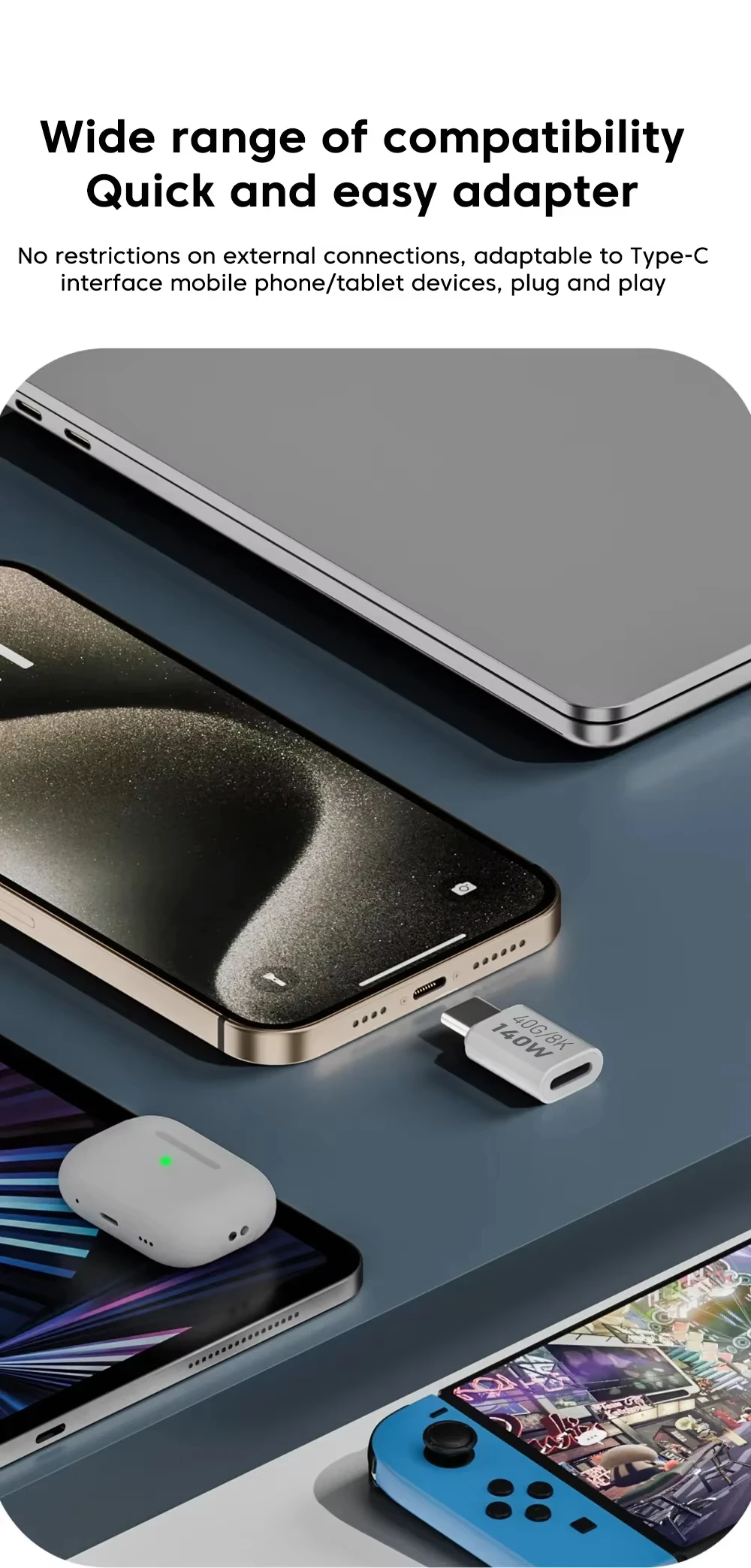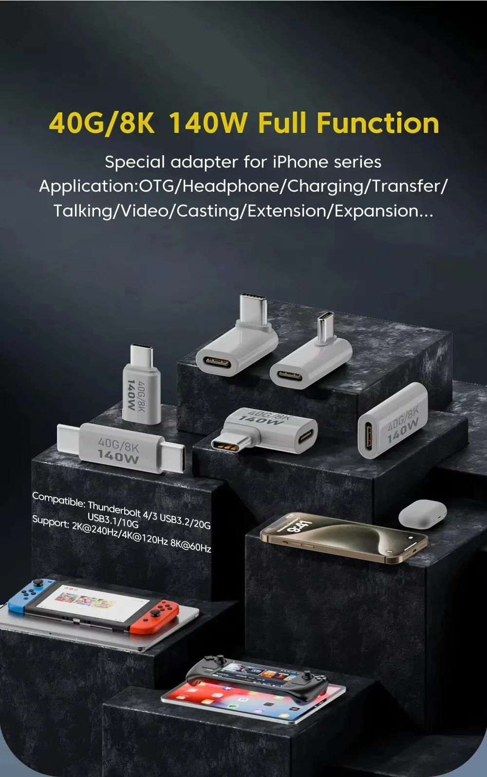 Salida de audio y vídeo en todos los dispositivos USB C.Es perfecto para teléfonos y portátiles, ya que le permite disfrutar de imágenes impresionantes con facilidad.