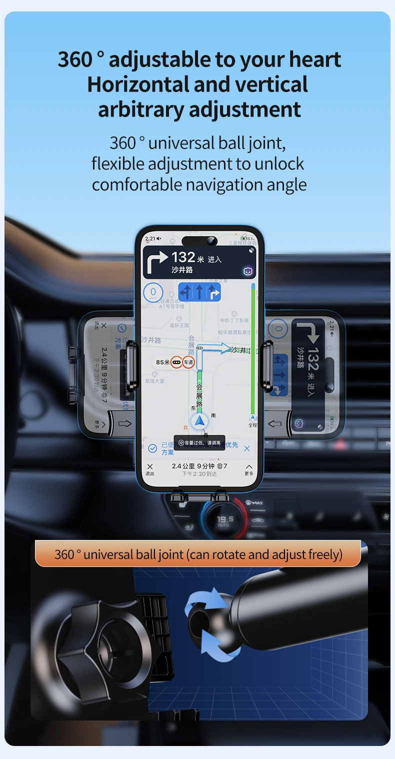 NNBILI-Soporte de ventosa de teléfono para salpicadero de coche, 10 pulgadas de largo, Universal, para parabrisas de aire, 360 grados, giratorio, GPS, antivibración