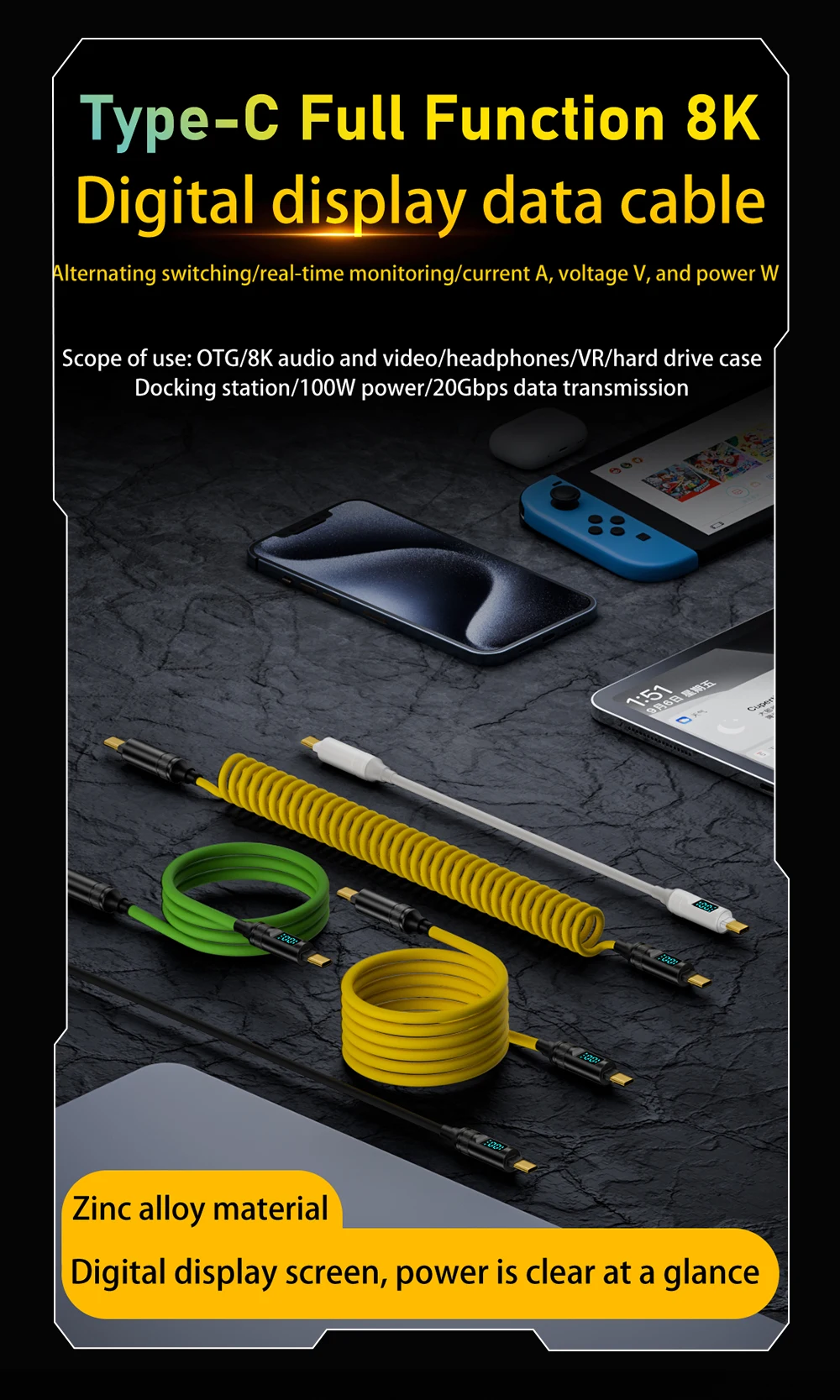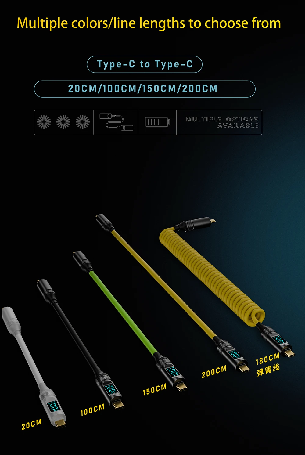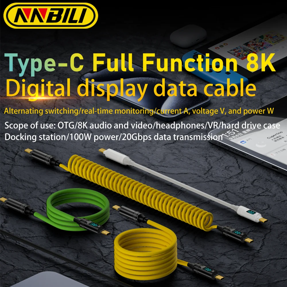 Comprar NNBILI USB3.2 20Gbps USB C a tipo C ThunderBolt 3 Cable de pantalla LED 100W 5A Cable de USB-C para iPhone 15 16 MacBook Pro Huawei OPPO