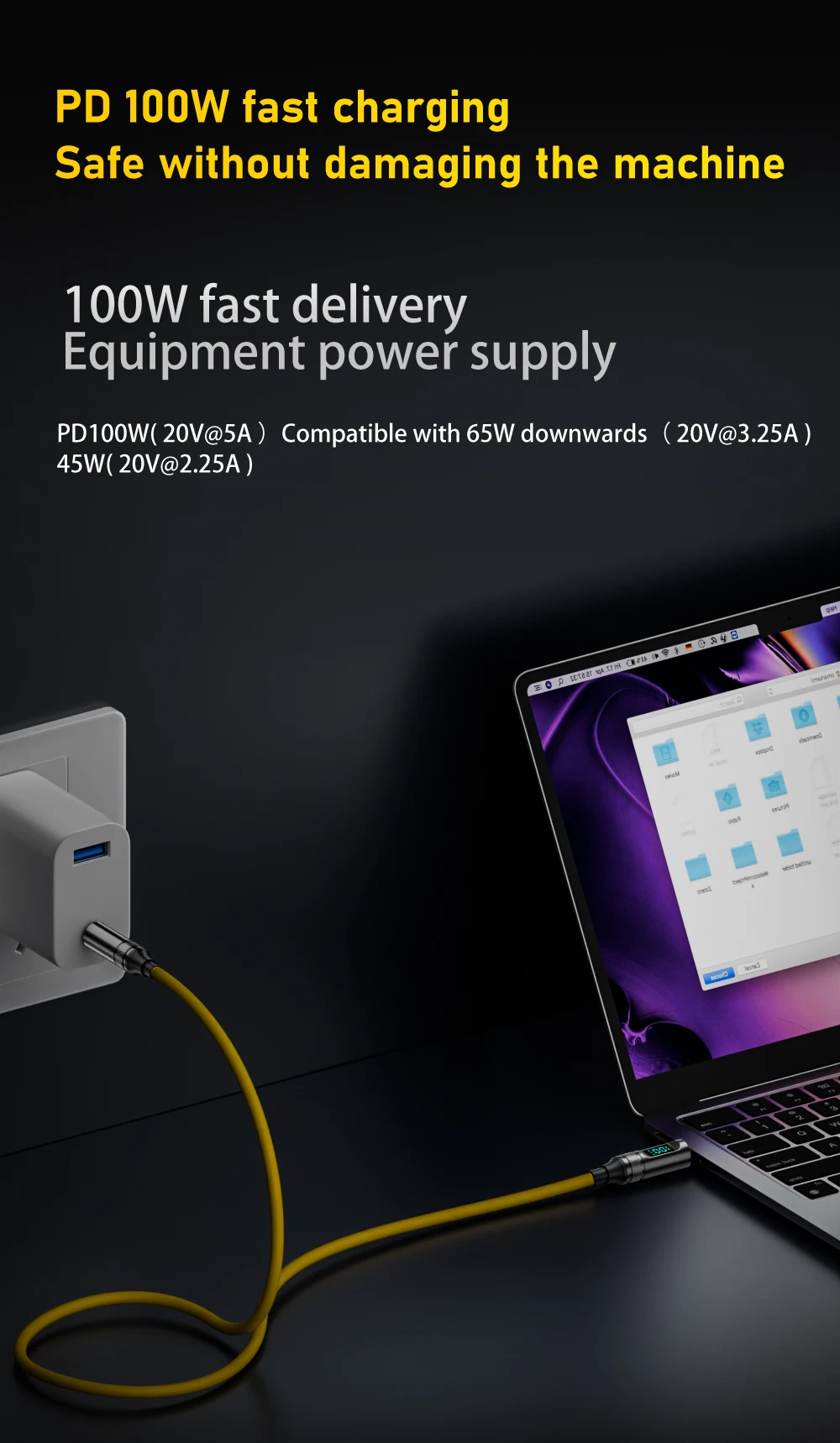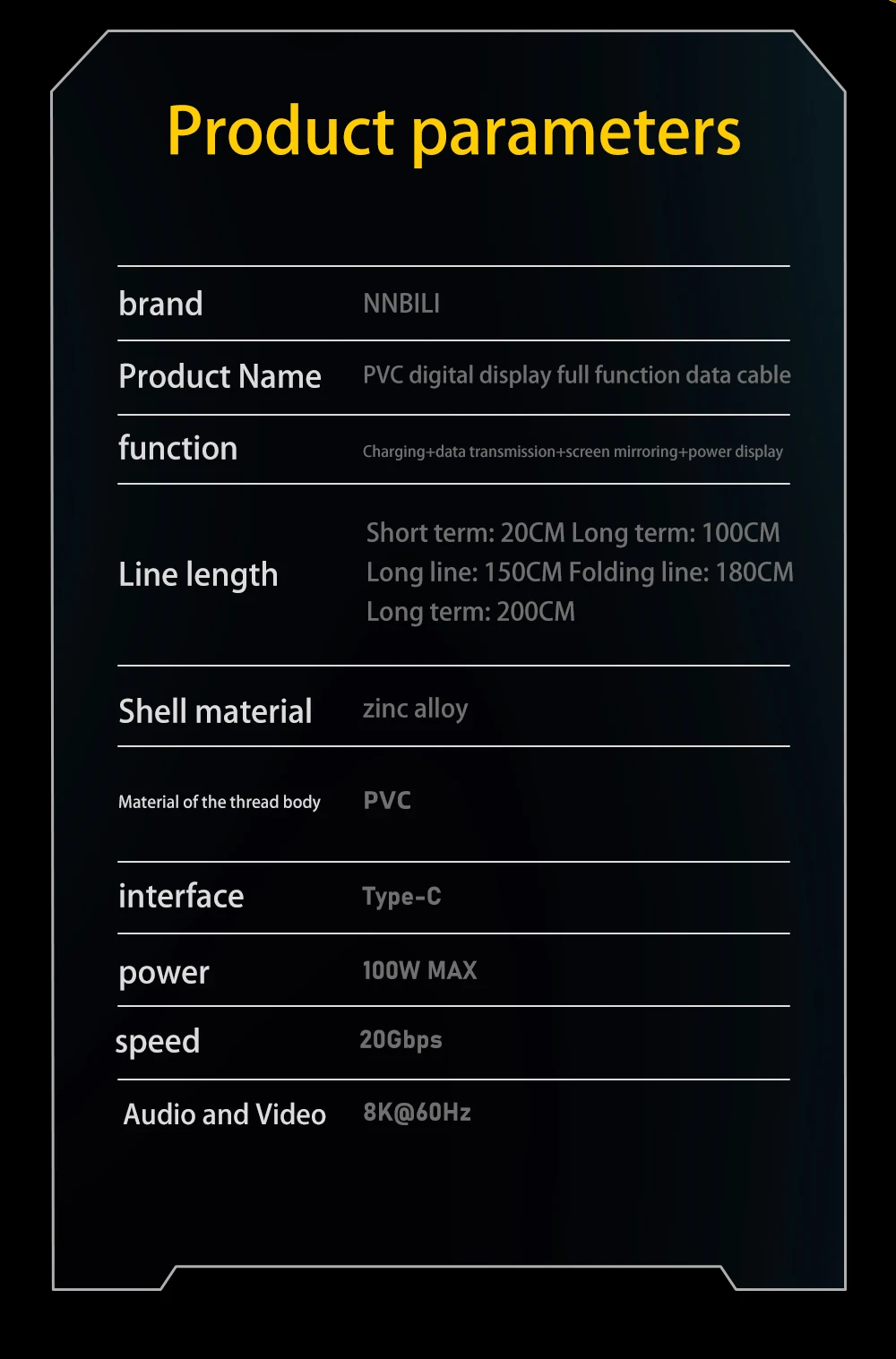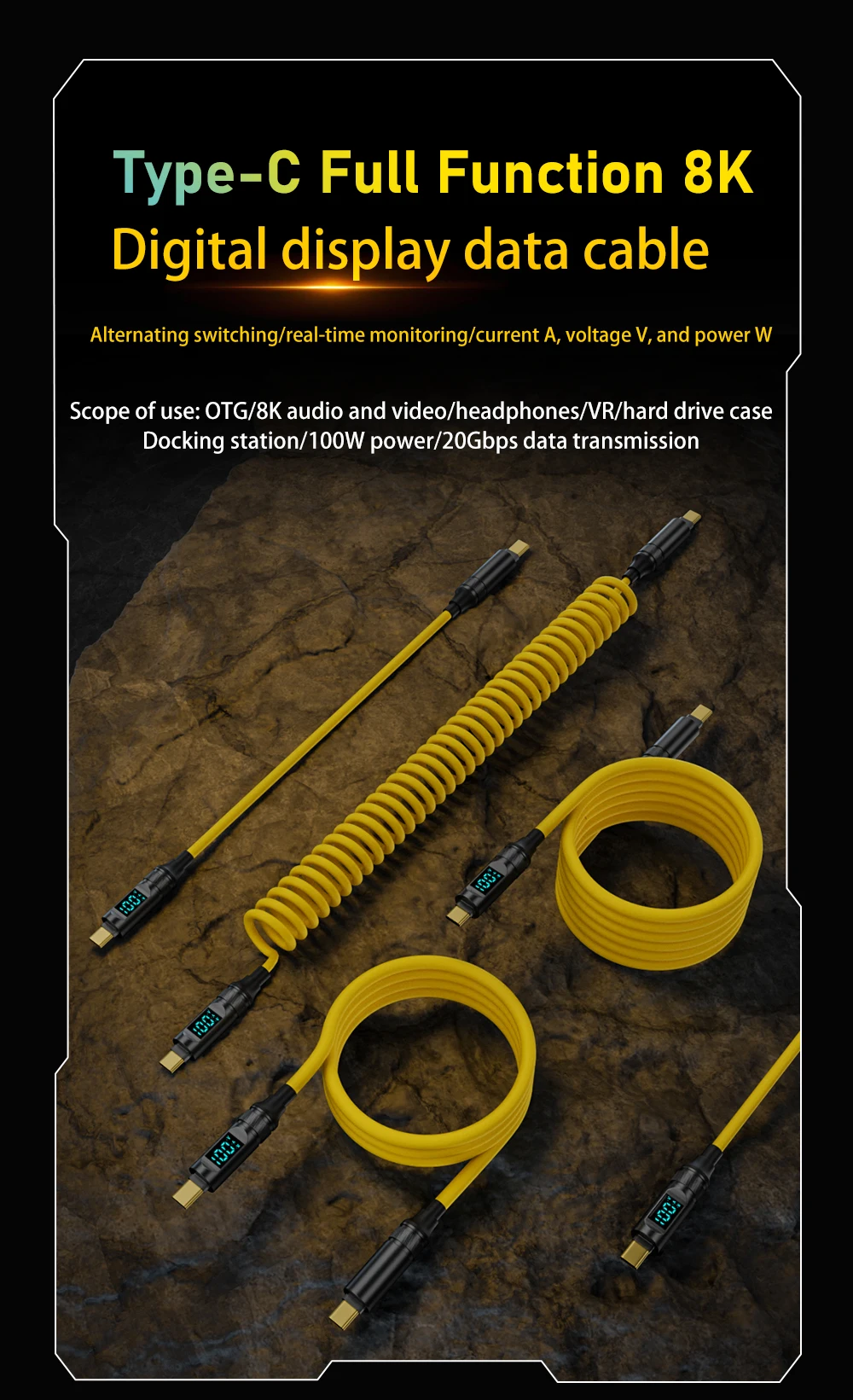 Comprar NNBILI USB3.2 20Gbps USB C a tipo C ThunderBolt 3 Cable de pantalla LED 100W 5A Cable de USB-C para iPhone 15 16 MacBook Pro Huawei OPPO
