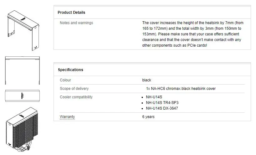 Fabricadas con los mismos estrictos estándares de calidad que sus ventiladores y enfriadores de CPU Noctua de confianza, las cubiertas del disipador de calor de la línea chromax vienen con la misma garantía del fabricante de 6 años que todos los demás productos Noctua.