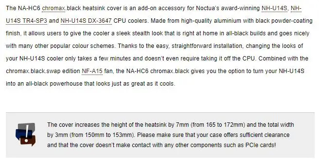 ¿Cansado de placas frontales de plástico delgadas y endebles? Las cubiertas del disipador de calor de la línea chromax están hechas de aluminio resistente de 1mm de espesor y cuentan con un acabado de recubrimiento en polvo resistente a los arañazos para que coincida con la calidad de construcción de su disipador de calor Noctua.