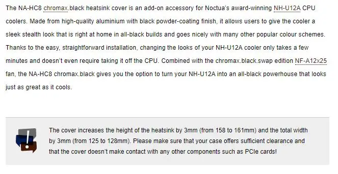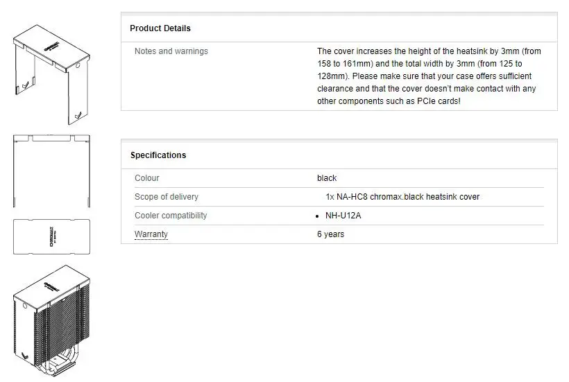 Manufactured to the same strict quality standards as your trusty Noctua CPU coolers and fans, the chromax line heatsink covers come with the same 6-year manufacturer’s warranty as all other Noctua products.