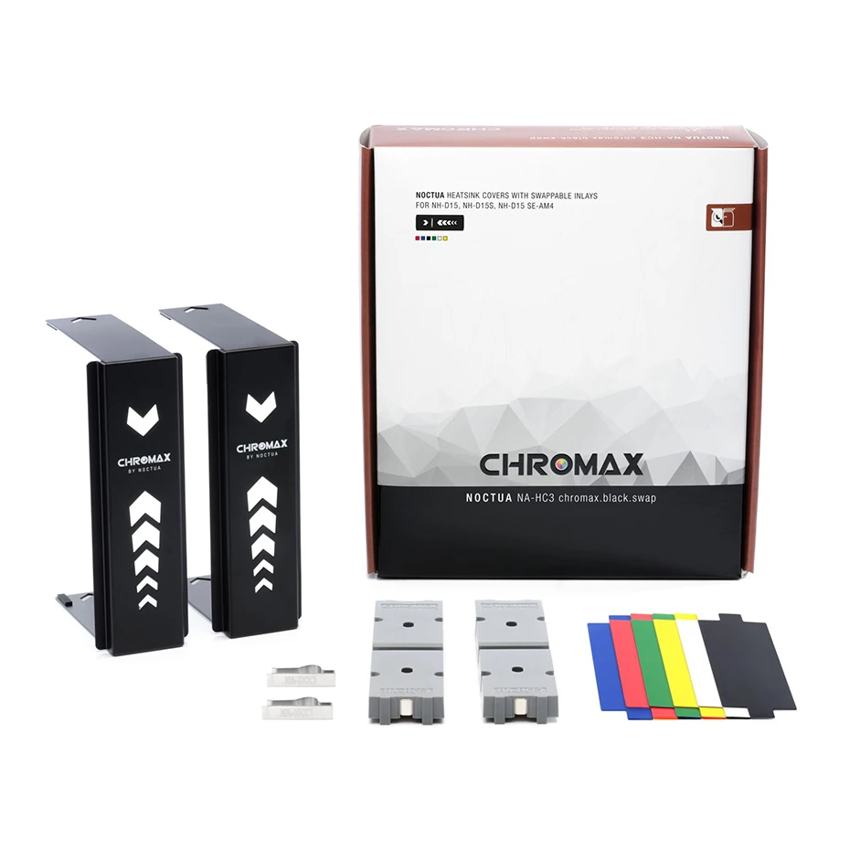 Las cubiertas del disipador de calor de chromax. Black. swap de son un accesorio adicional para los galardonados enfriadores de CPU de Noctua, de tipo de sistema de refrigeración, de tipo 2, 2 y 3, 3 y 4. Hecho de aluminio de alta calidad con acabado de recubrimiento en polvo negro e incluye incrustaciones intercambiables en negro, blanco, rojo, azul, verde y amarillo, permiten a los usuarios personalizar el color del refrigerador para coordinarlo con esquemas de color de construcción populares como todo negro, blanco y negro o negro y rojo. Gracias a la instalación fácil y directa, cambiar el aspecto de su enfriador de La (S) solo toma unos minutos y ni siquiera requiere quitarlo de la CPU. Combinado con chromax. Negro. Edición intercambiable de los dos chromax de los ventiladores, los dos de los chromax. Negro. Las fundas intercambiables te dan infinitas posibilidades para diseñar tu propio, individual, de forma que se ve tan genial como genial.