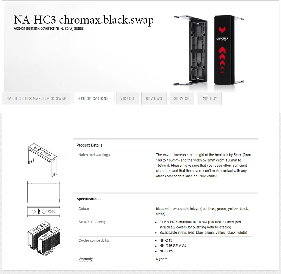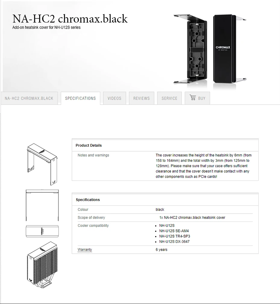 La cubierta aumenta la altura del disipador térmico en 6mm (de 158 a 164mm) y el ancho total en 3mm (de 125mm a 128mm). ¡Asegúrese de que su funda tenga suficiente espacio y de que no haga contacto con ningún otro componente, como las tarjetas PCIe!
